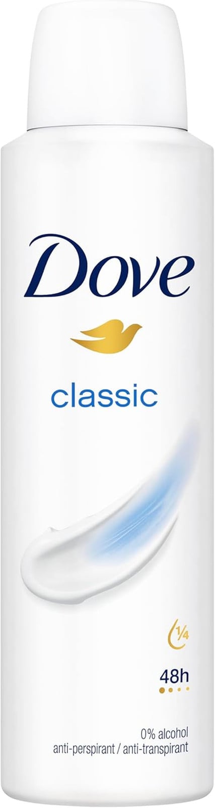 Dove Classic Fresh Women's Antiperspirant Deodorant Body Spray for 48 hour sweat and odour protection with ¼ moisturising cream 150 ml, Pack of 6