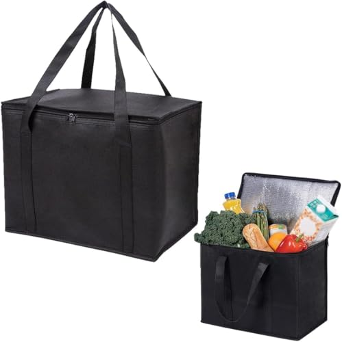 2Pcs Cooler Box, 35L Insulated Cooler Box, Thermal Food Delivery Bag Cool Bags with Zip Big Cold Bag Picnic Reusable Insulation Shopping Bags Foldable for Beach Camping Work Trip (Black)