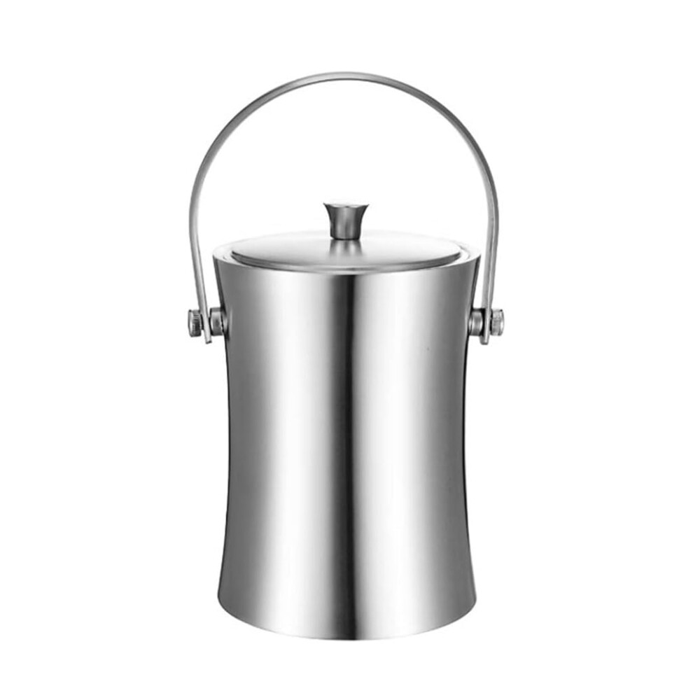 Modern Stainless Steel Ice Bucket - 1L Ice Cube Cooler with Handle for Wine, Champagne, and Cocktails