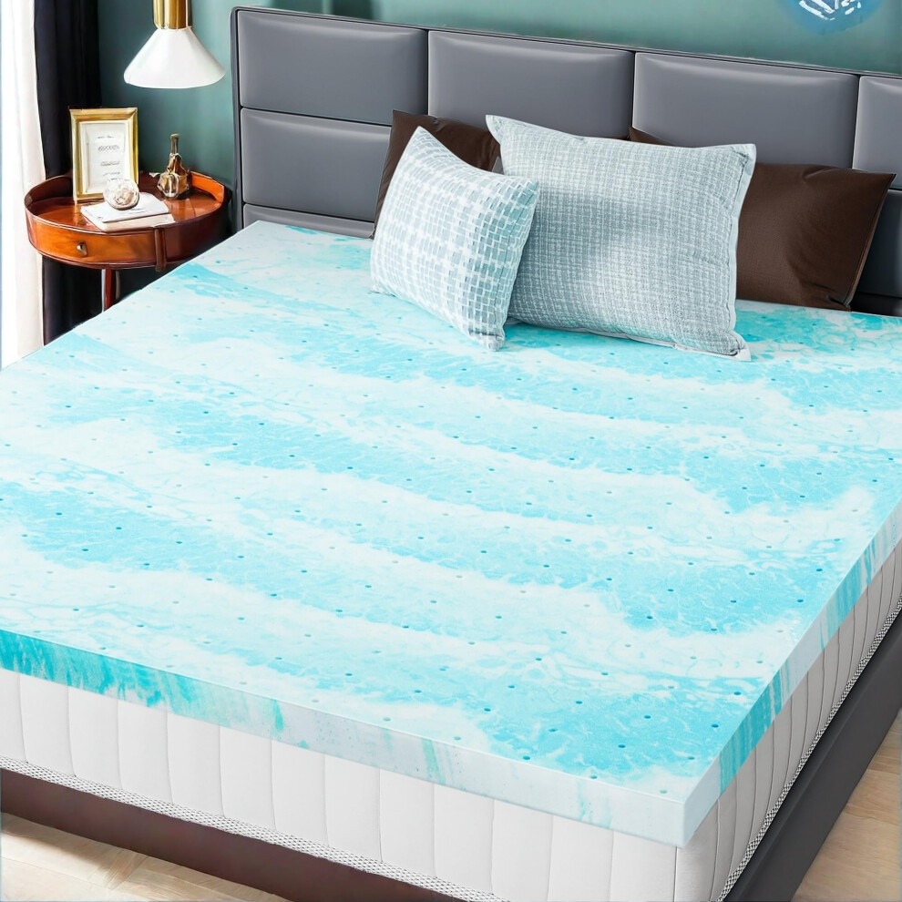 Cooling Gel Memory Foam Mattress Topper Queen 3 Inch, Ventilated Design for Pressure Relief and Cooler Sleep