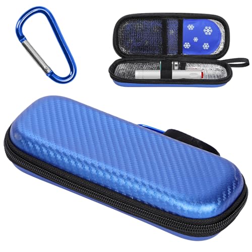 Risipu Insulin Cooler Travel Case with Hanging Buckle Insulin Pen Case Portable Hard Medicine Cool Bag Small Diabetes Kit Bag Organize Supplies Insulated Cooling Bag Without Ice Pack (Bright Blue)