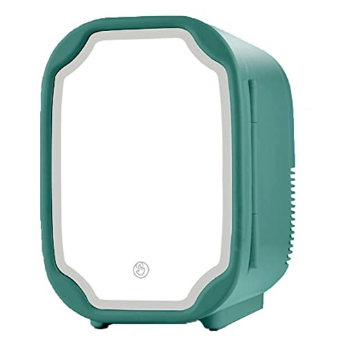 Mini Fridge 8 Liter Beauty Fridge Makeup Mirror Refrigerators Portable 2 In 1 Food Heating The Cooling Cooler With LED Light For Skincare & Cosmetics AC+DC (Color : Green)