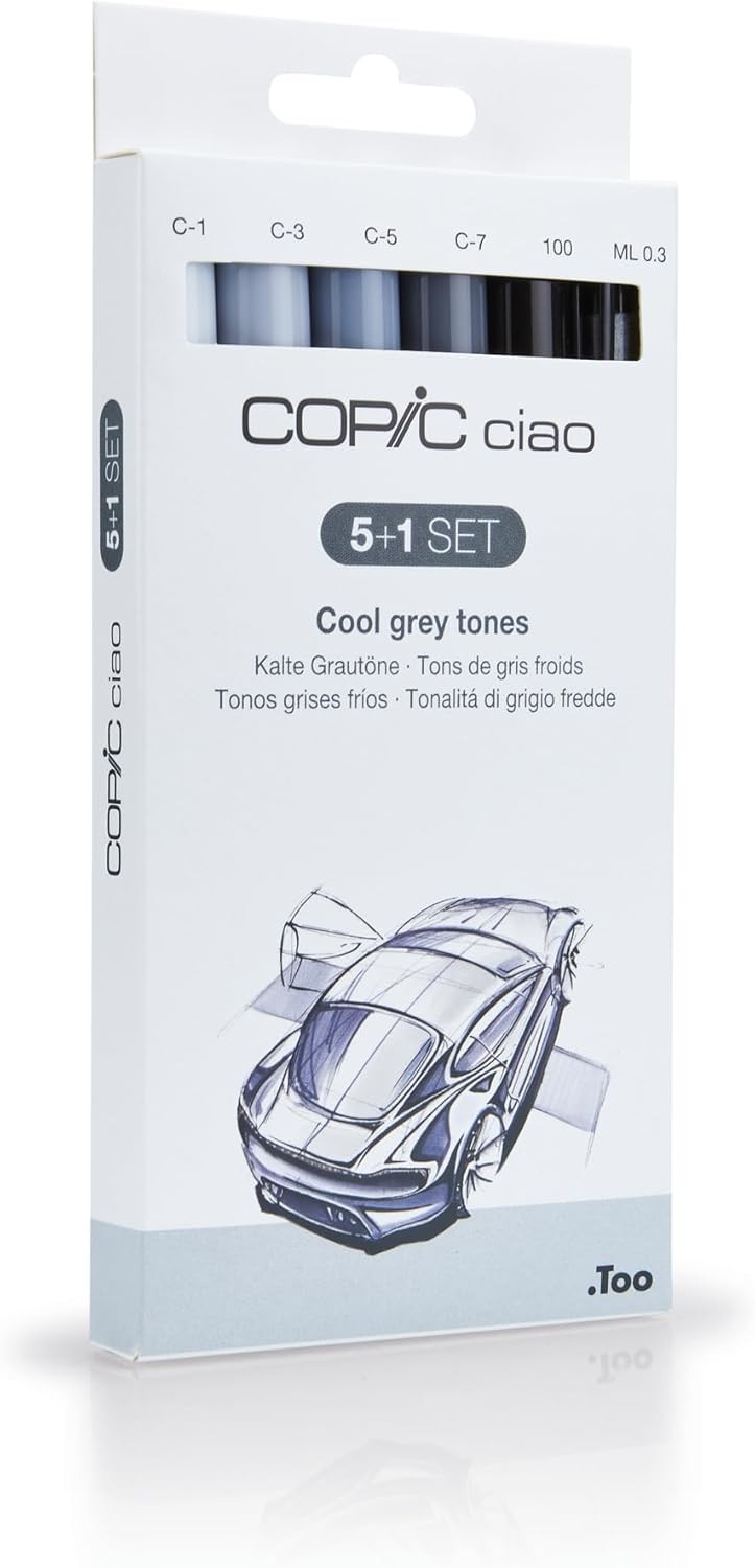 COPIC Ciao Coloured Marker Pen - 5+1 Set Grey Tones, For Art & Crafts,...