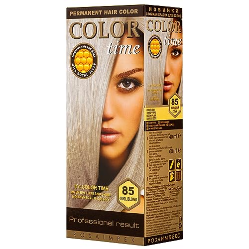COLOR TIME | Permanent Gel Hair Dye Cold Blonde Color 85 | Enriched with Royal Jelly and Vitamin C | Permanent Hair Color | Covers Gray Hair | 100 ML