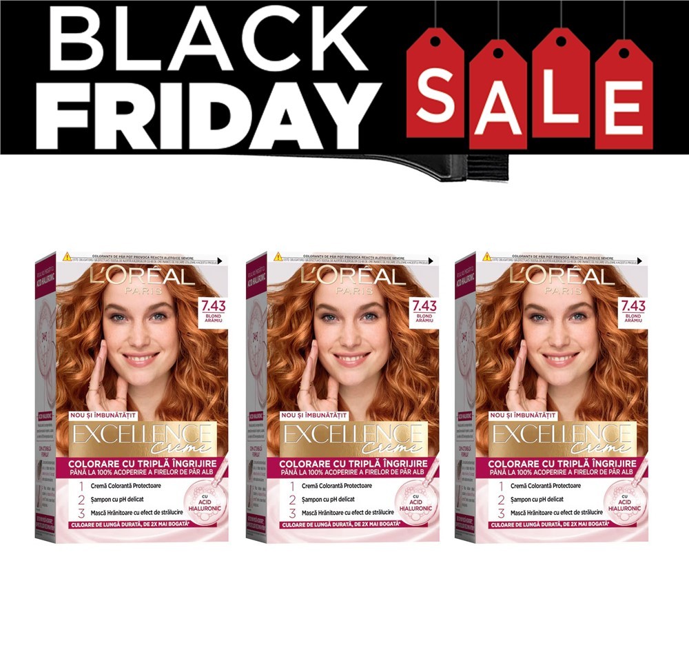 L'Oréal Paris Excellence 7.43 Copper Blonde Salon Quality Hair Color Bulk 3-Pack
