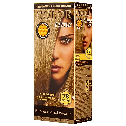 COLOR TIME | Permanent Gel Hair Dye Light Blonde Color 78 | Enriched with Royal Jelly and Vitamin C | Permanent Hair Color | Covers Gray Hair | 100 ML