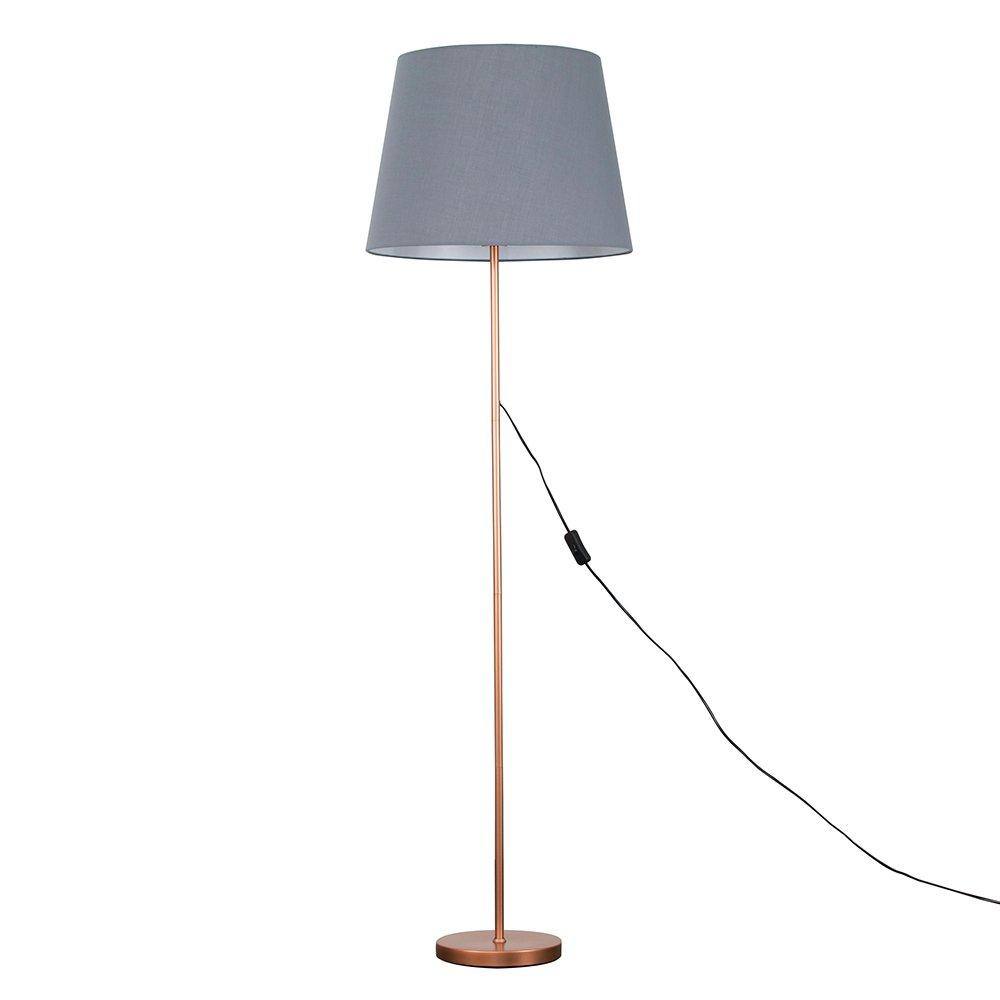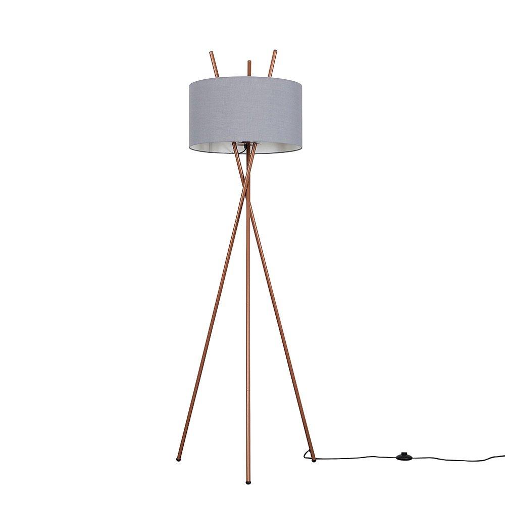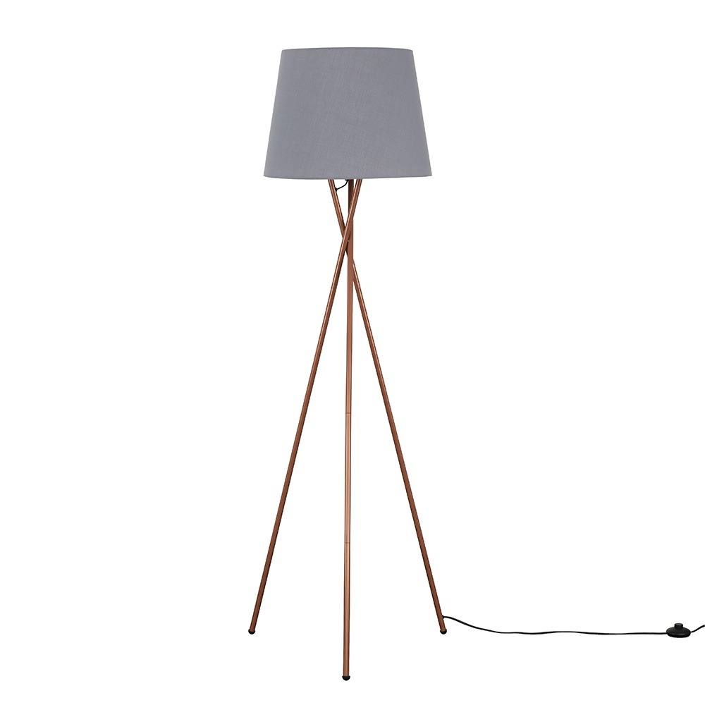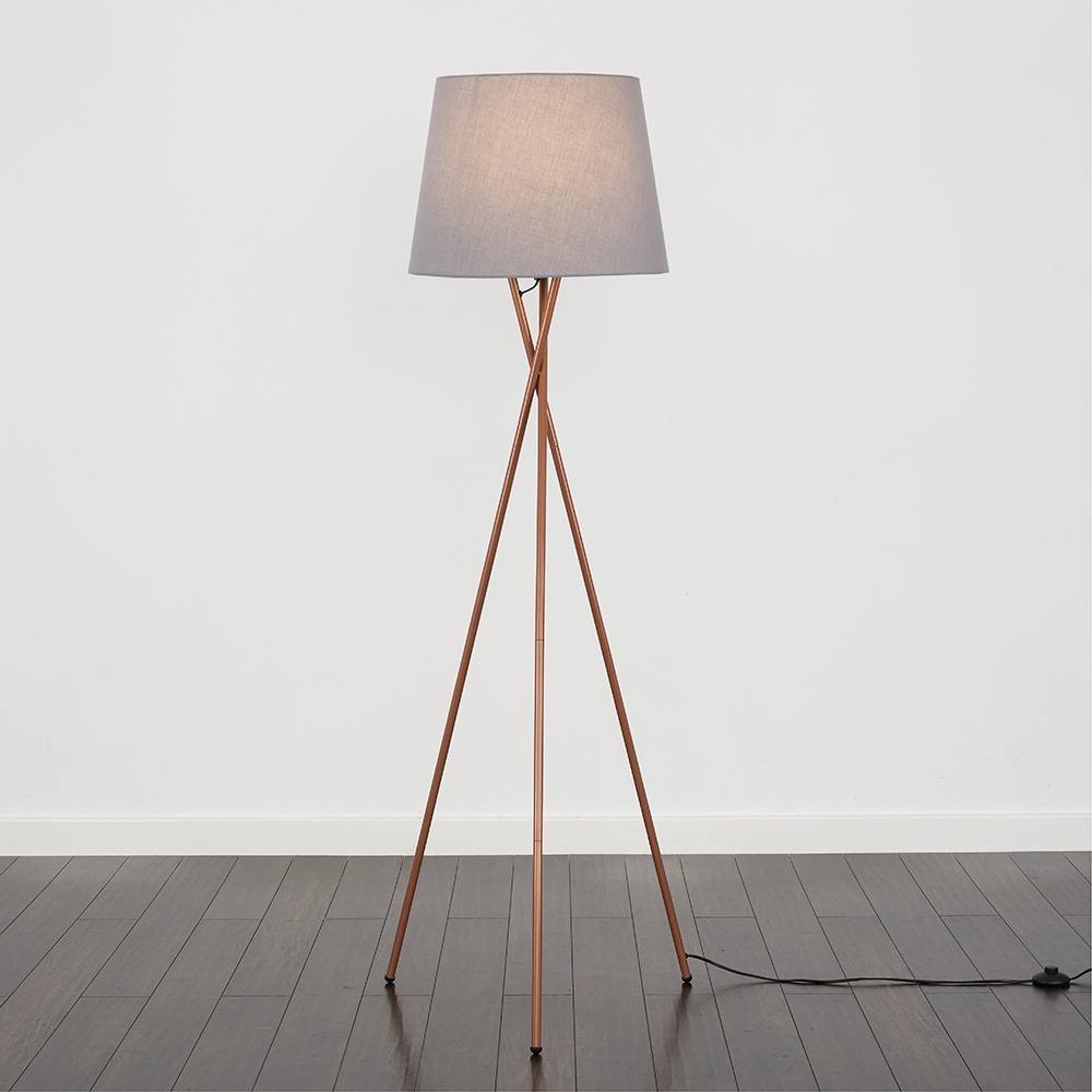 ValueLights Camden Copper Metal Tripod Floor Lamp with Grey Tapered Lamp Shade