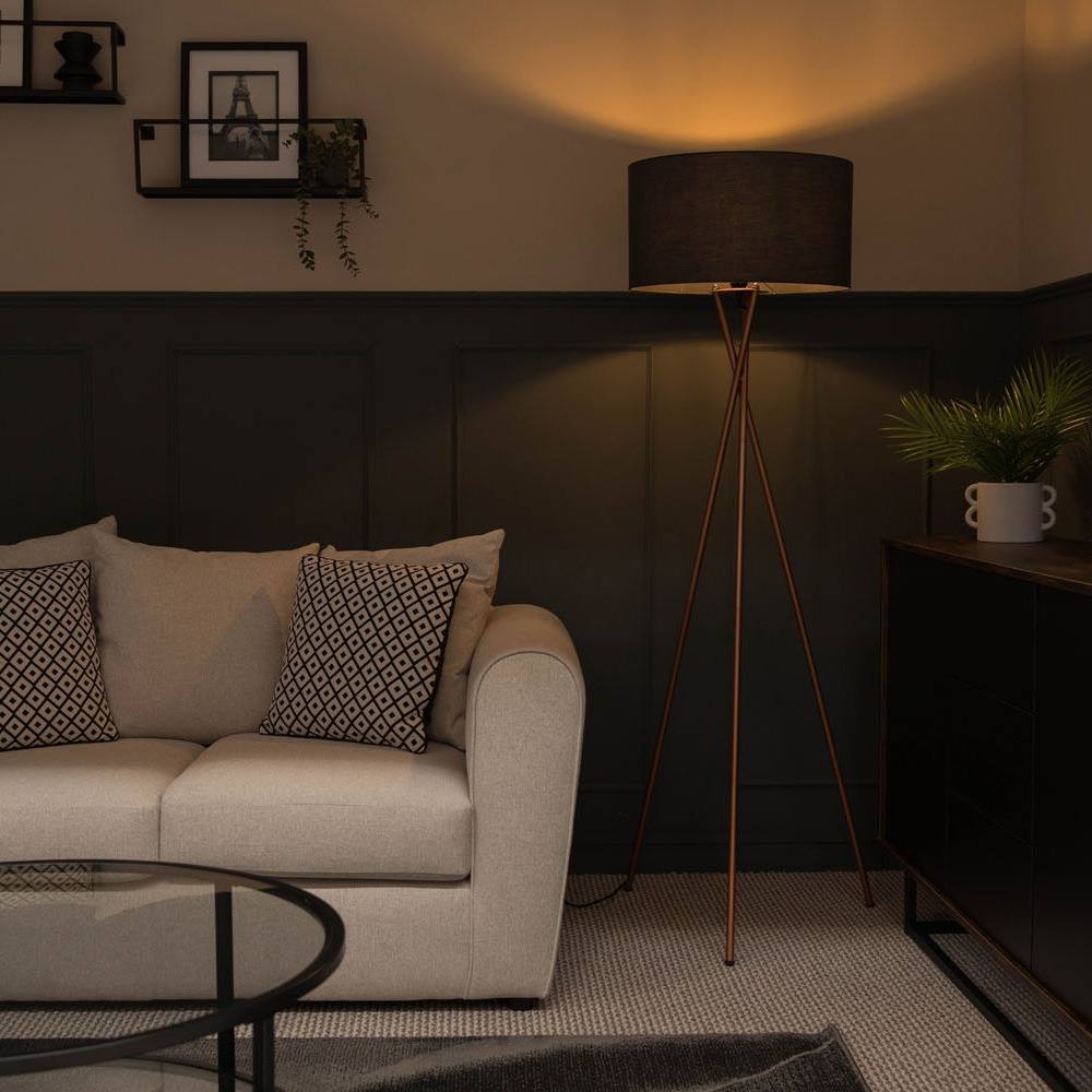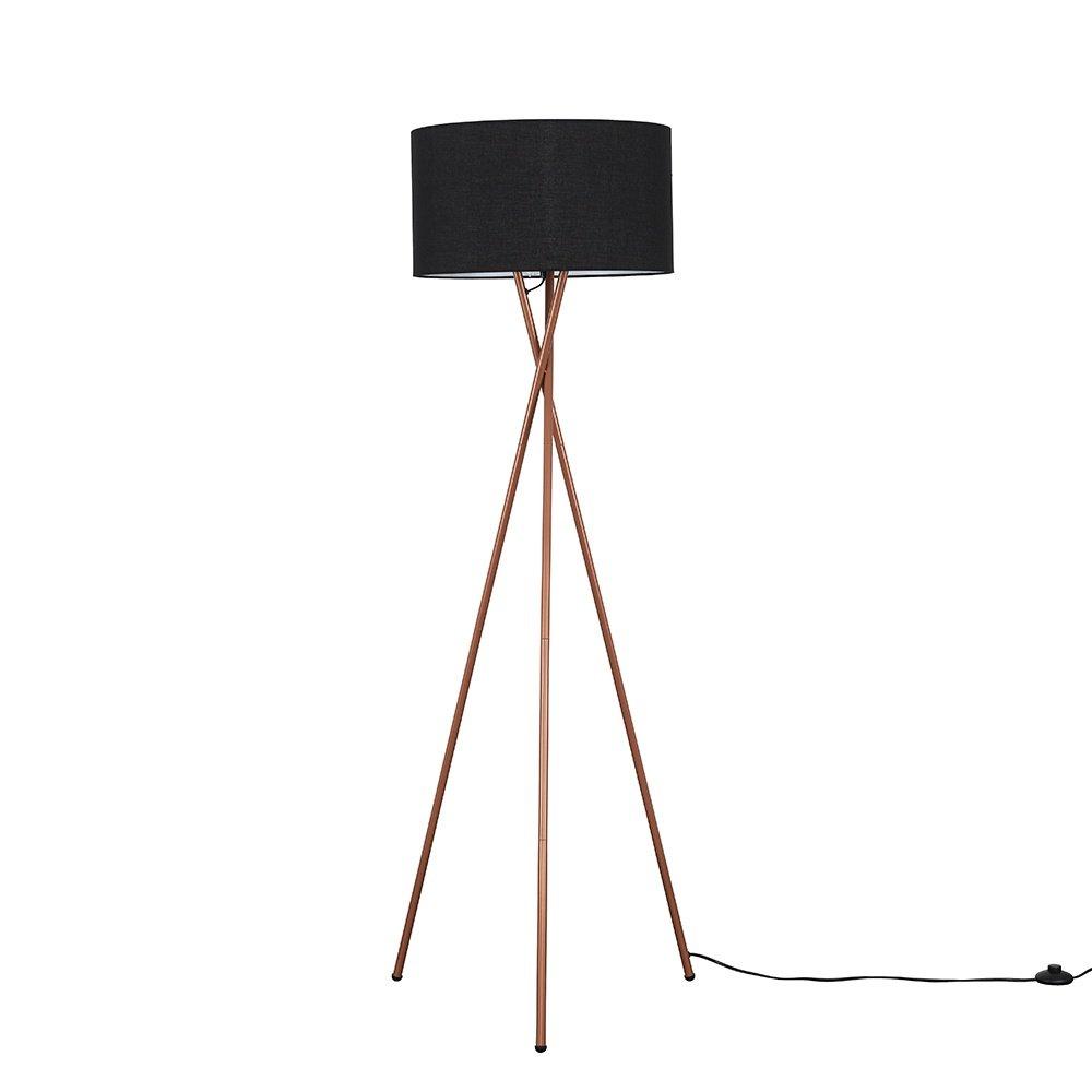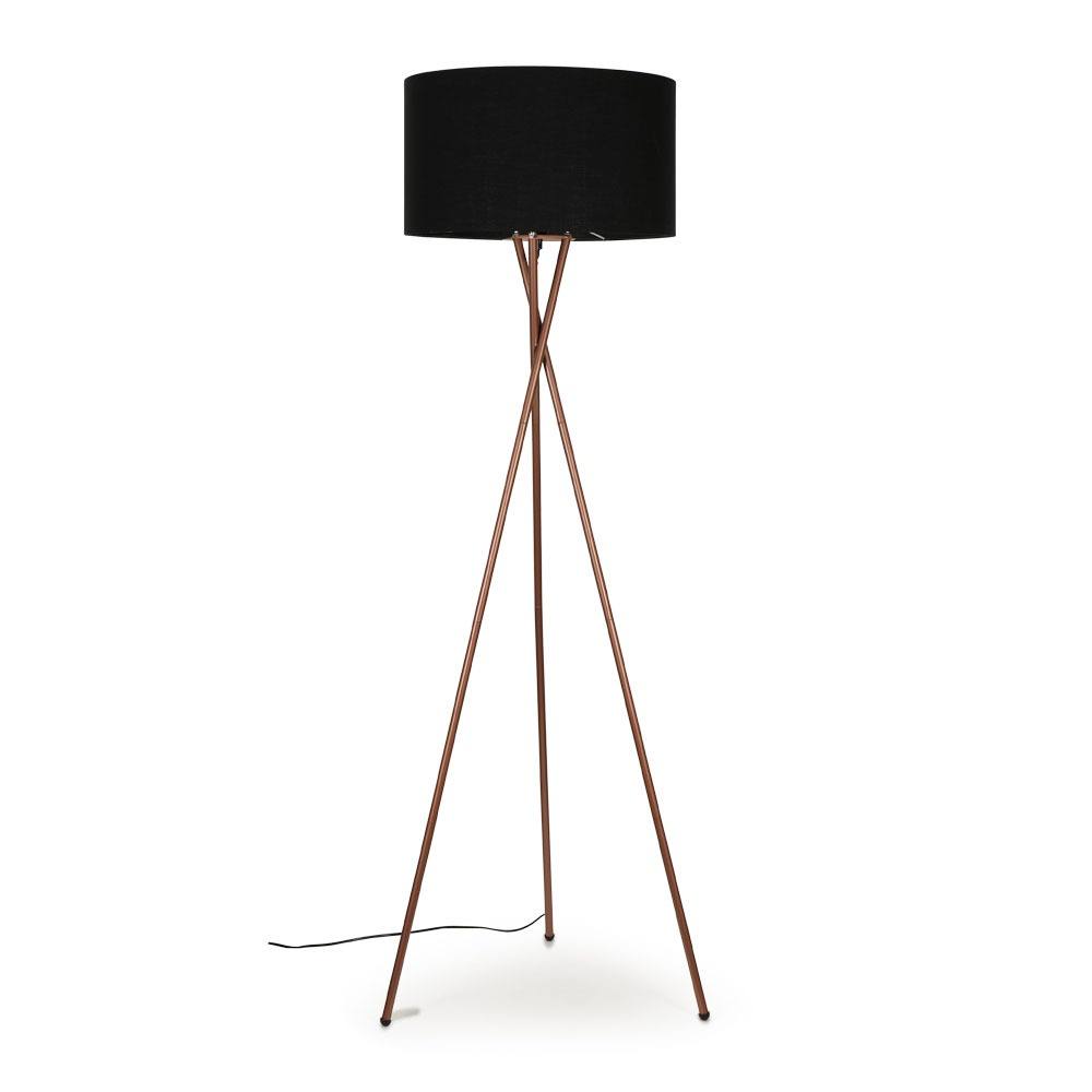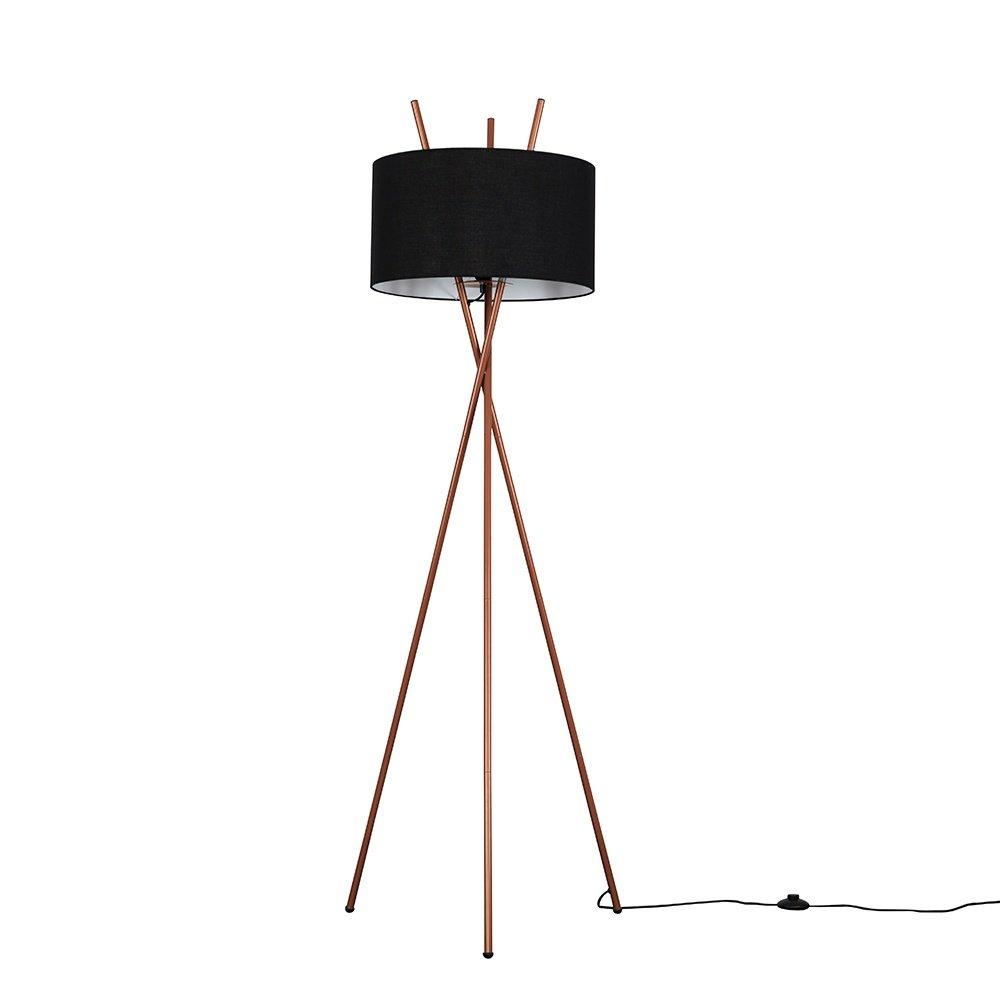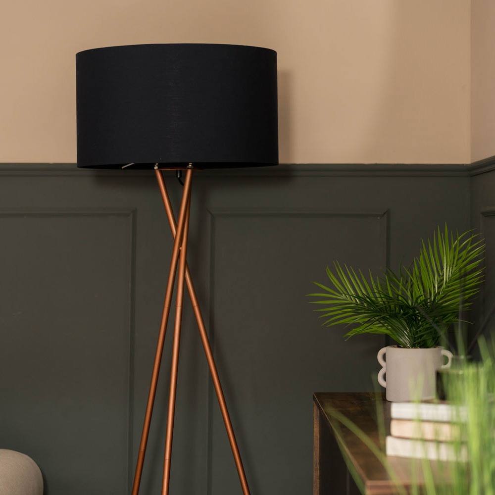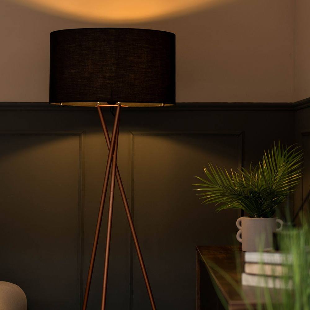 ValueLights Camden Copper Metal Tripod Floor Lamp with Black Drum Lamp Shade