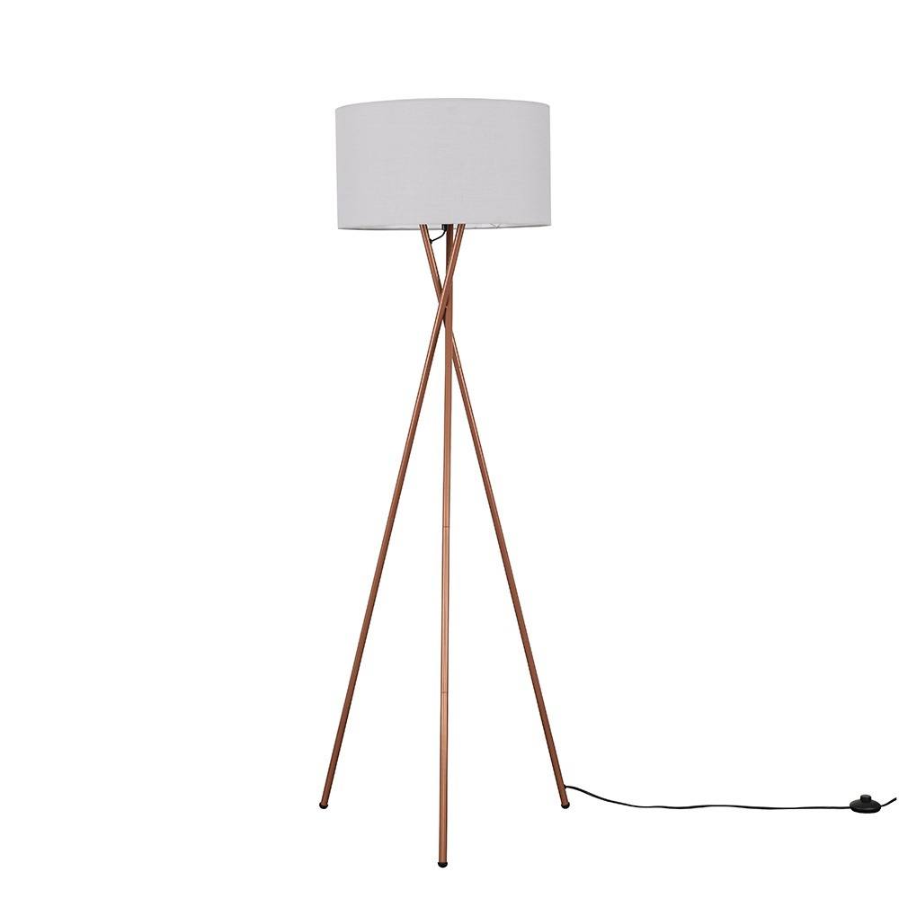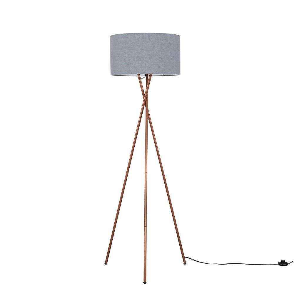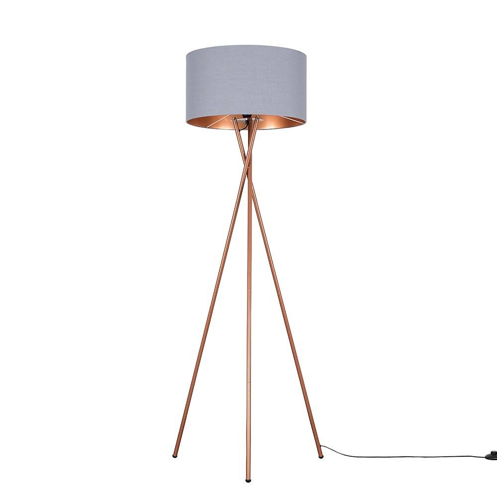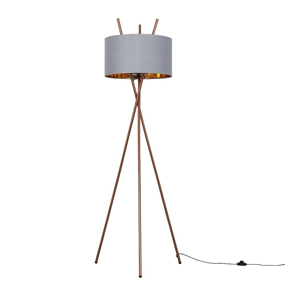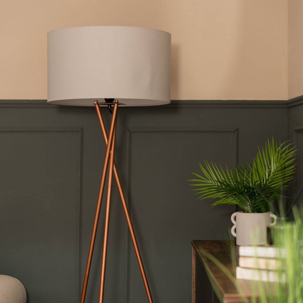 ValueLights Camden Copper Metal Tripod Floor Lamp with Grey & Copper Lamp Shade