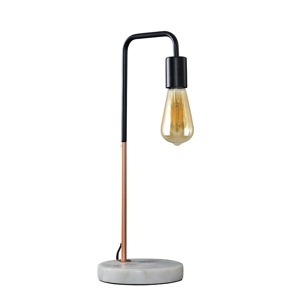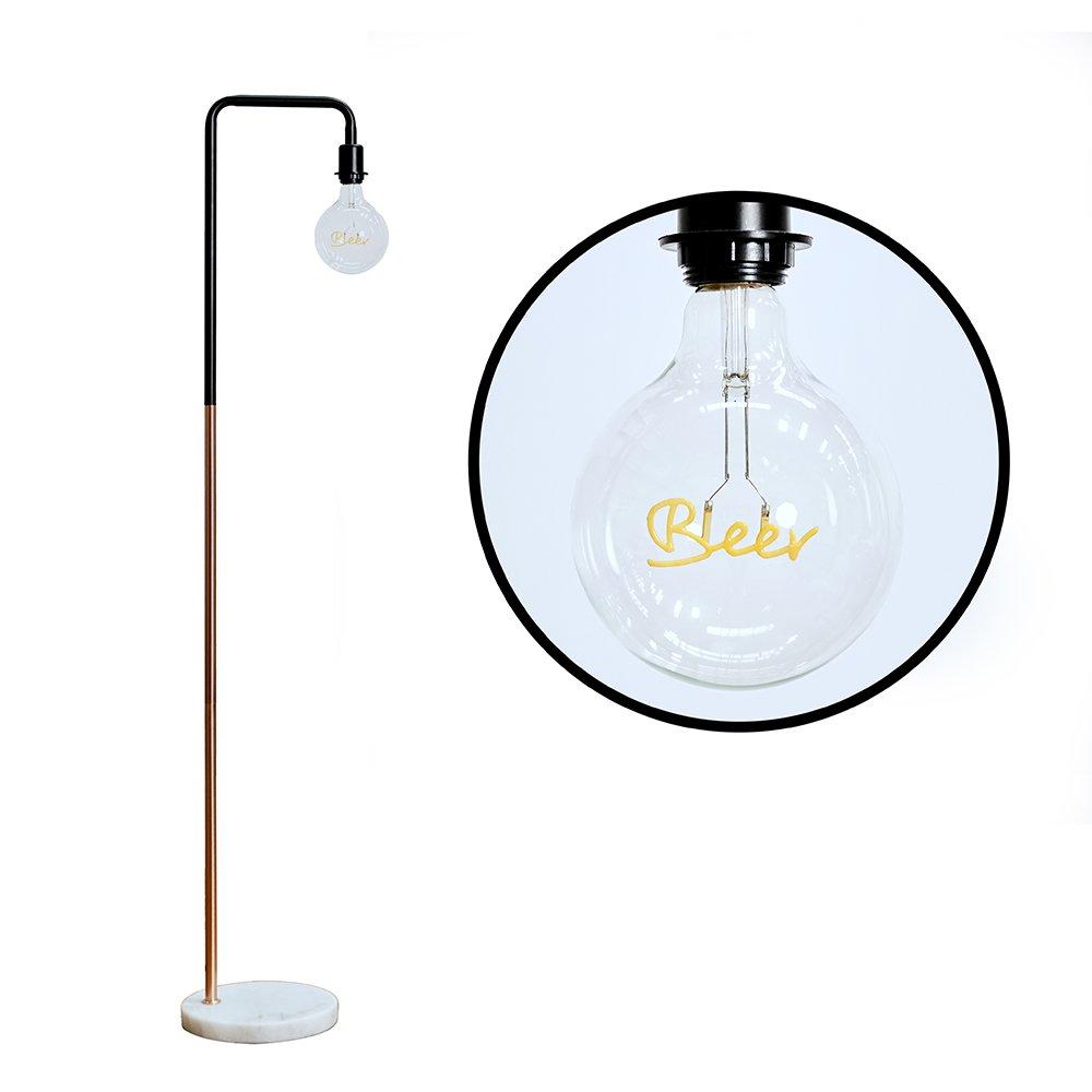 Talisman Black And Copper Floor Lamp With Marble Base Base And Vintage E27 Beer Worded Bulb