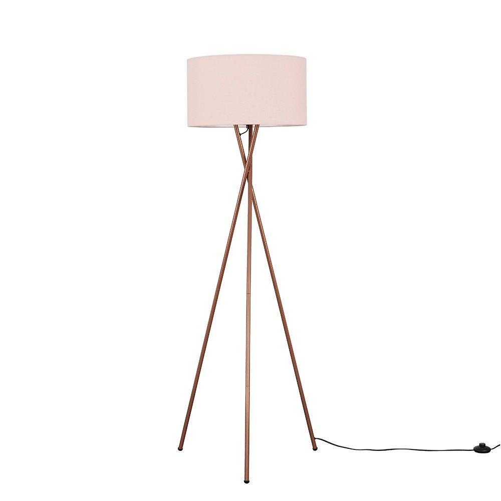ValueLights Camden Copper Metal Tripod Floor Lamp with Drum Lamp Shade and Bulb in Dusty Pink