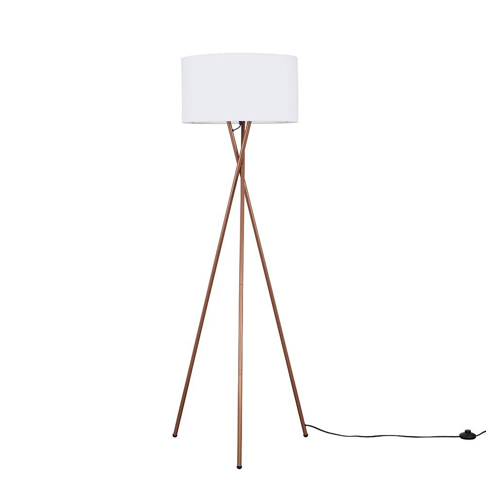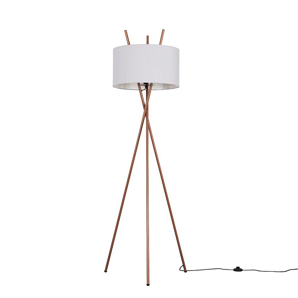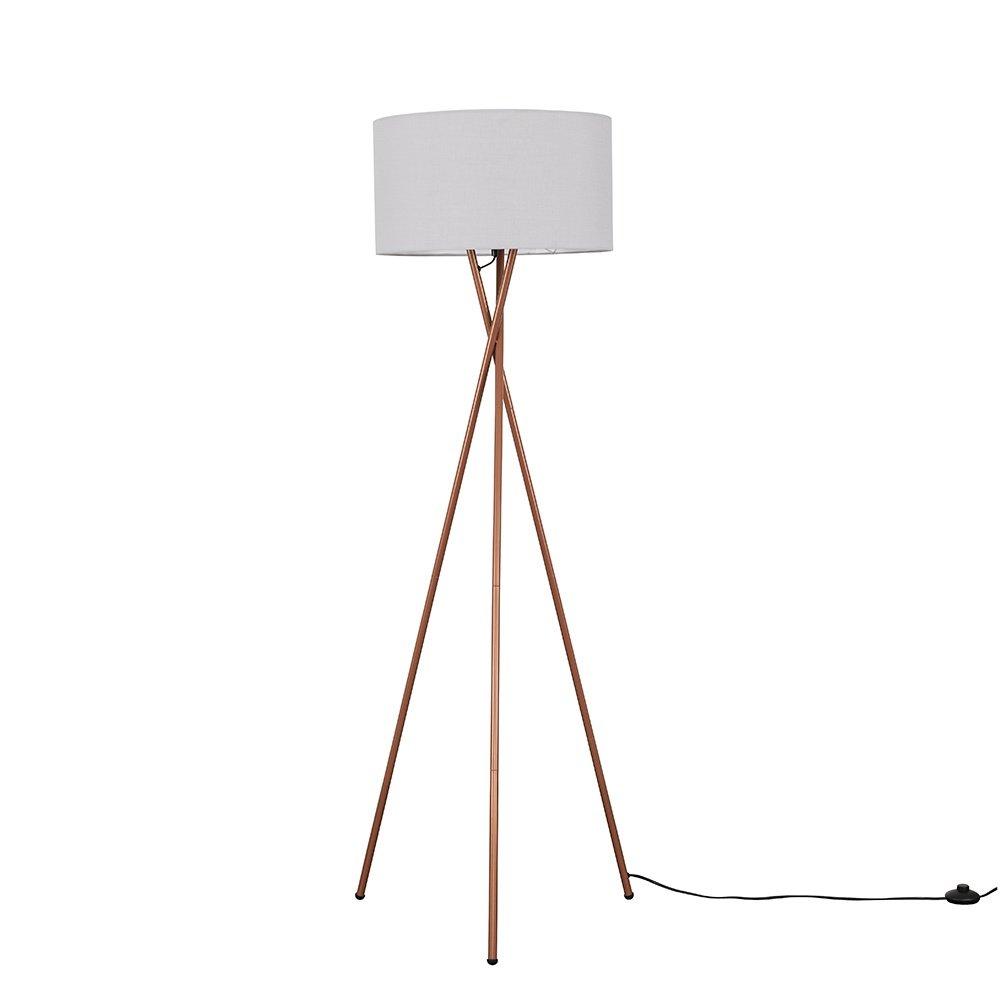 ValueLights Camden Copper Metal Tripod Floor Lamp with Drum Lamp Shade and Bulb in White