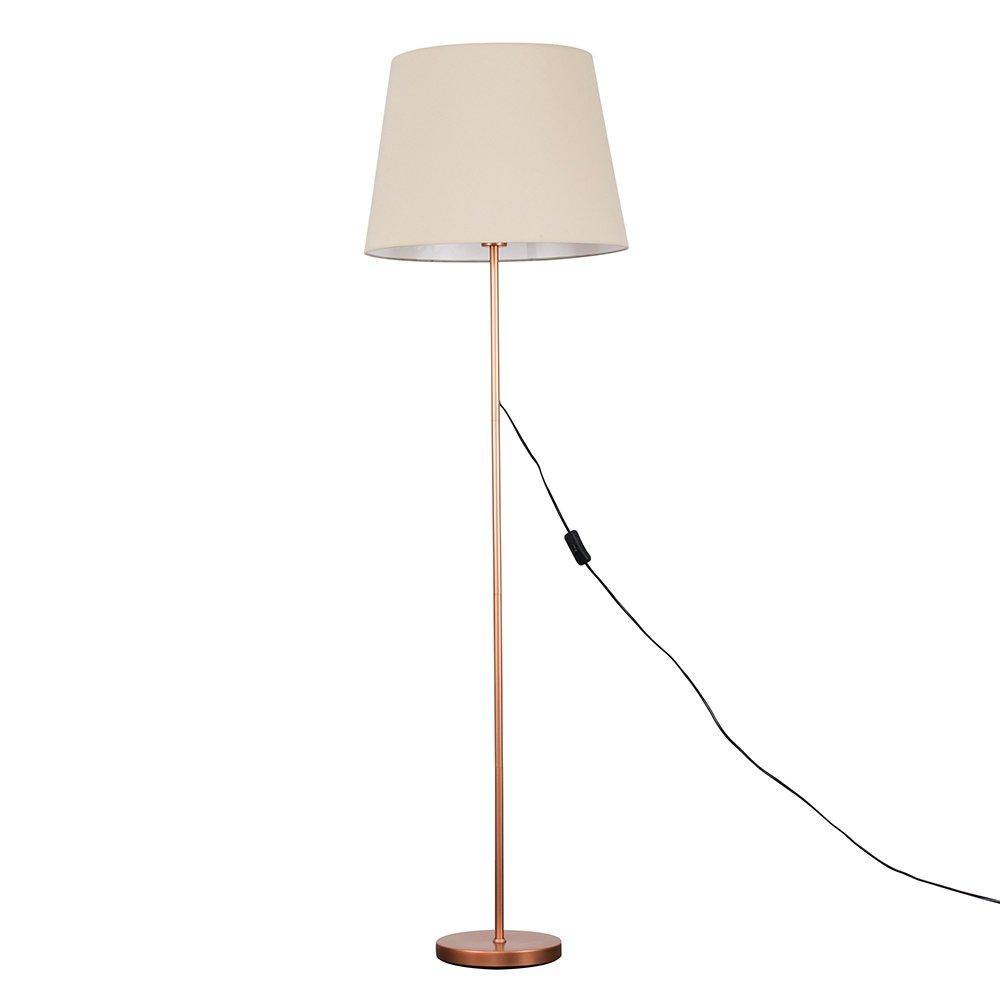 ValueLights Charlie Copper Floor Lamp with Beige Shade and LED Bulb