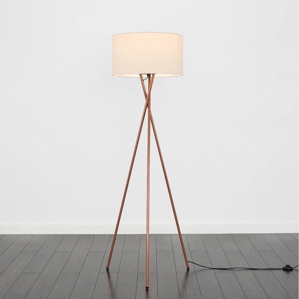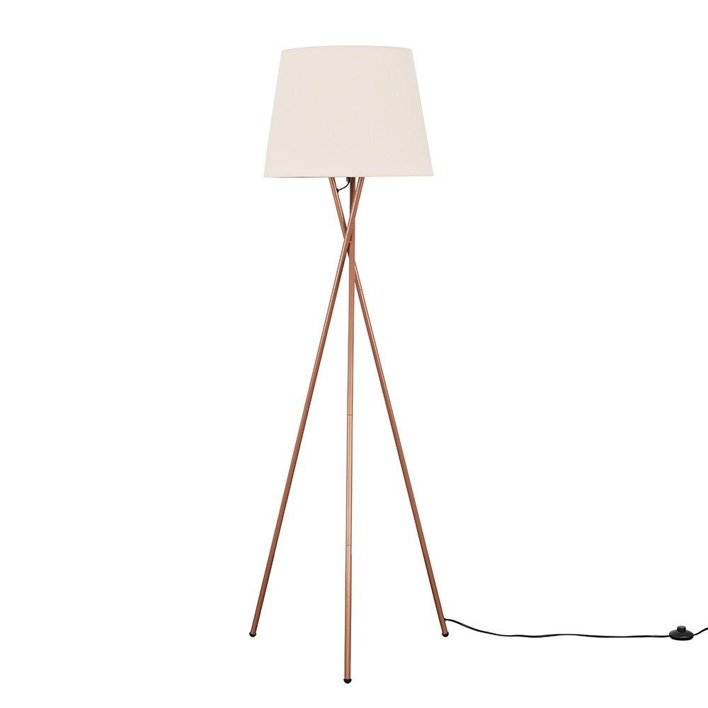 ValueLights Camden Copper Metal Tripod Floor Lamp with Beige Tapered Lamp Shade