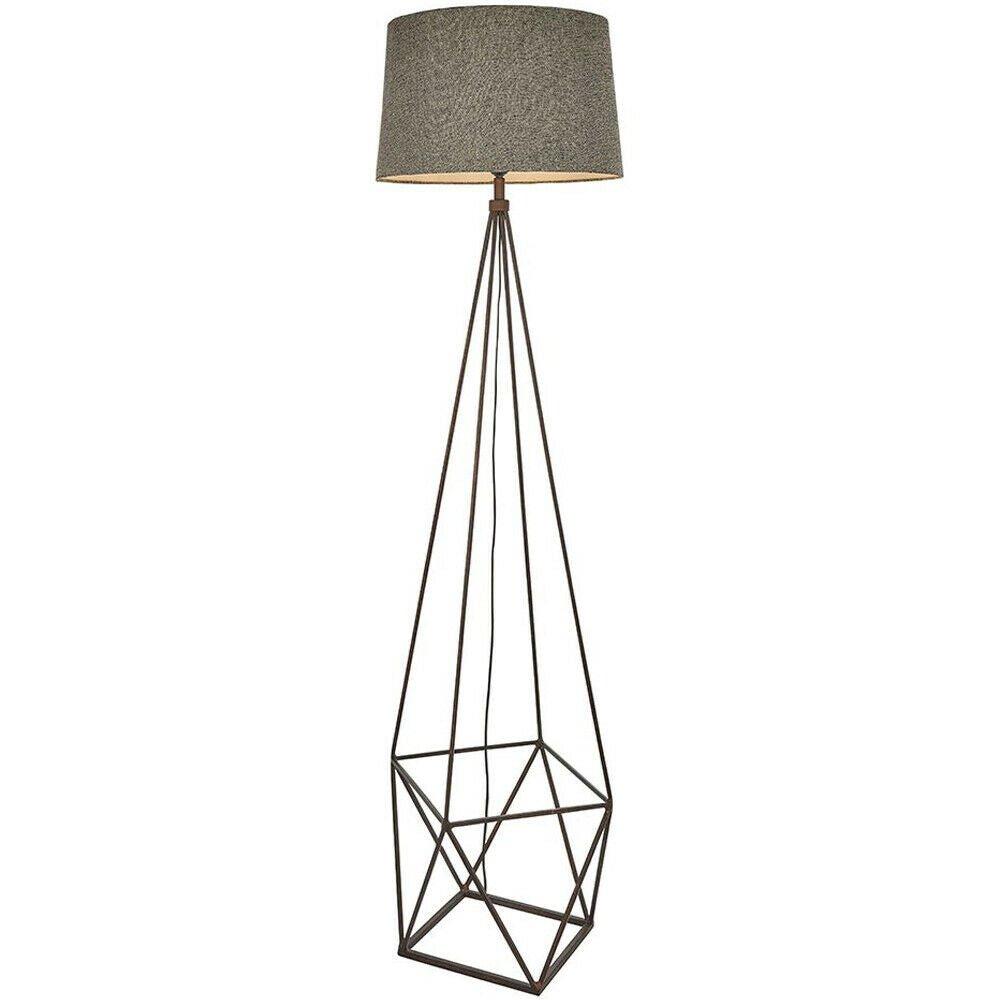 Geometric Cage Floor Lamp Aged Copper & Grey Fabric Shade 1750mm Tall Standing