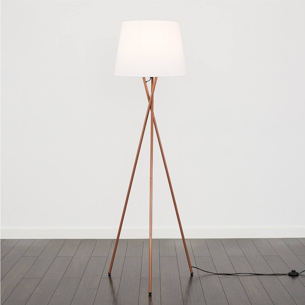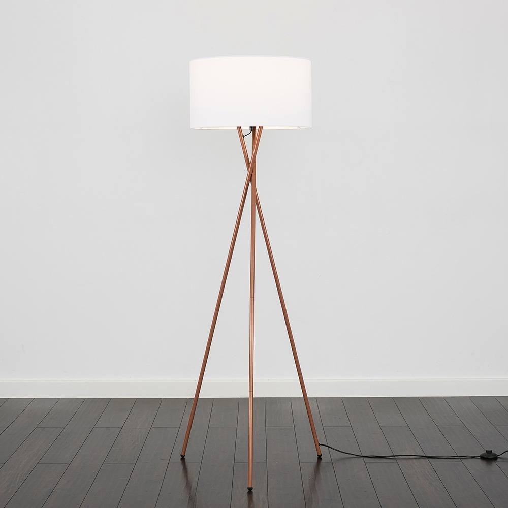 ValueLights Camden Copper Metal Tripod Floor Lamp with White Tapered Lamp Shade