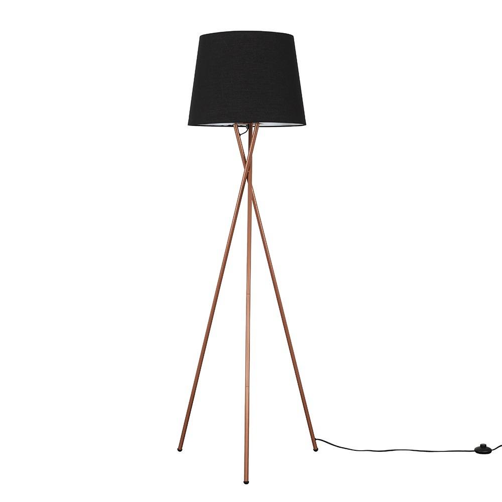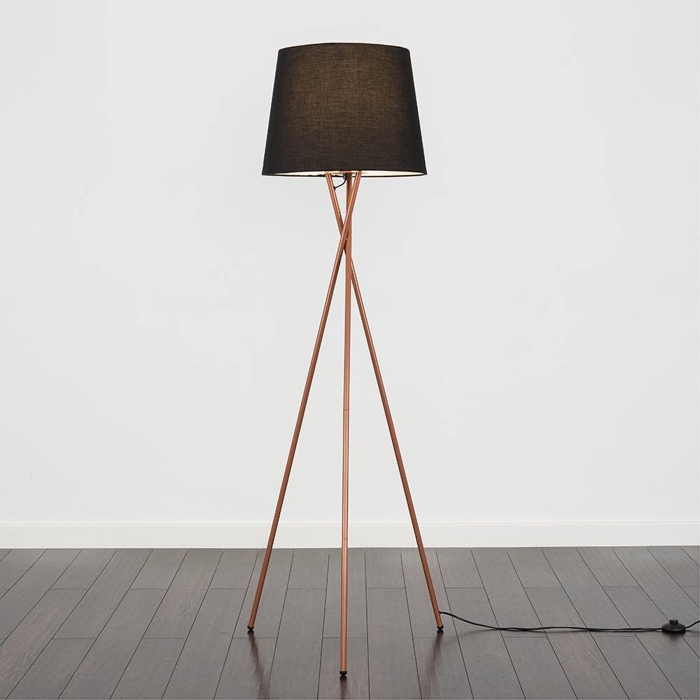 ValueLights Camden Copper Metal Tripod Floor Lamp with Black Tapered Lamp Shade