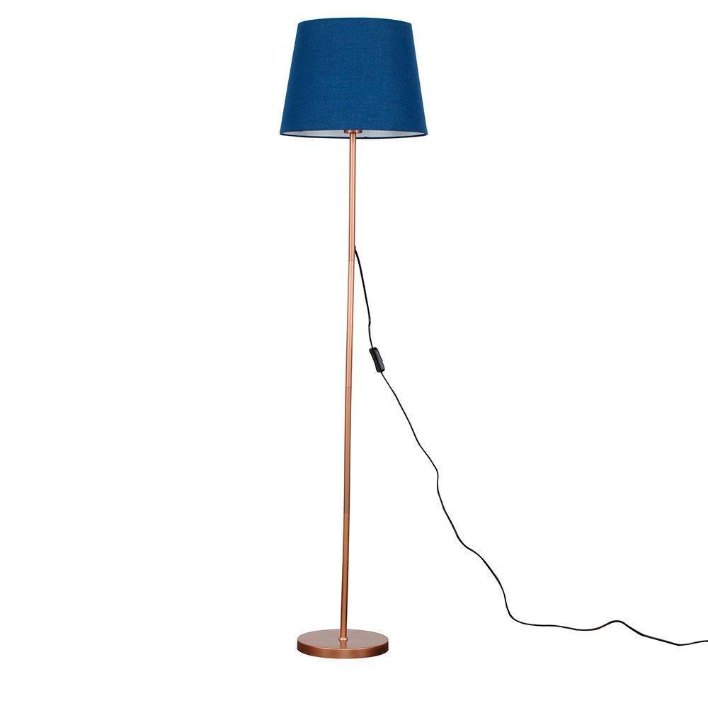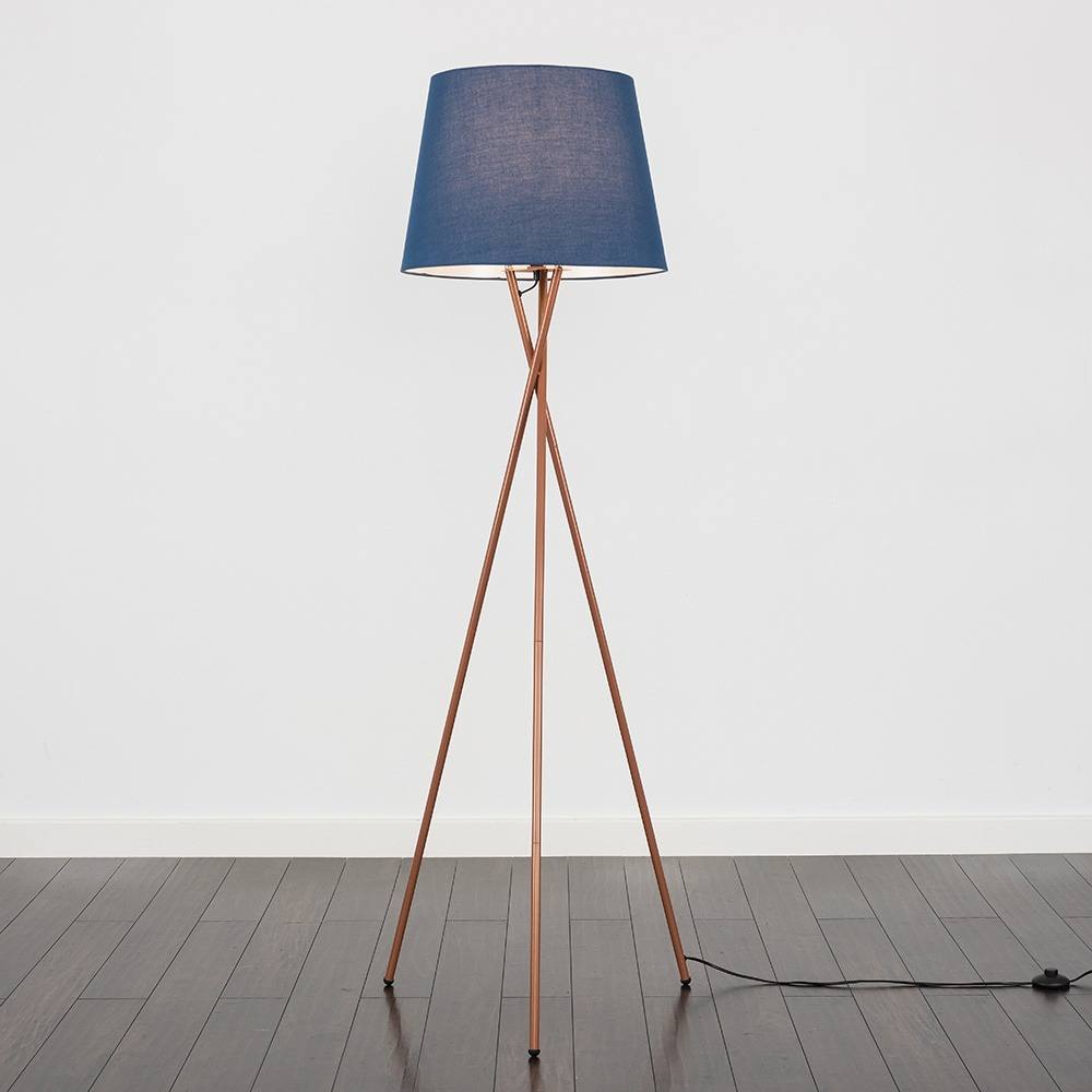 ValueLights Camden Copper Metal Tripod Floor Lamp and Navy Blue Tapered Lamp Shade in Dark Navy