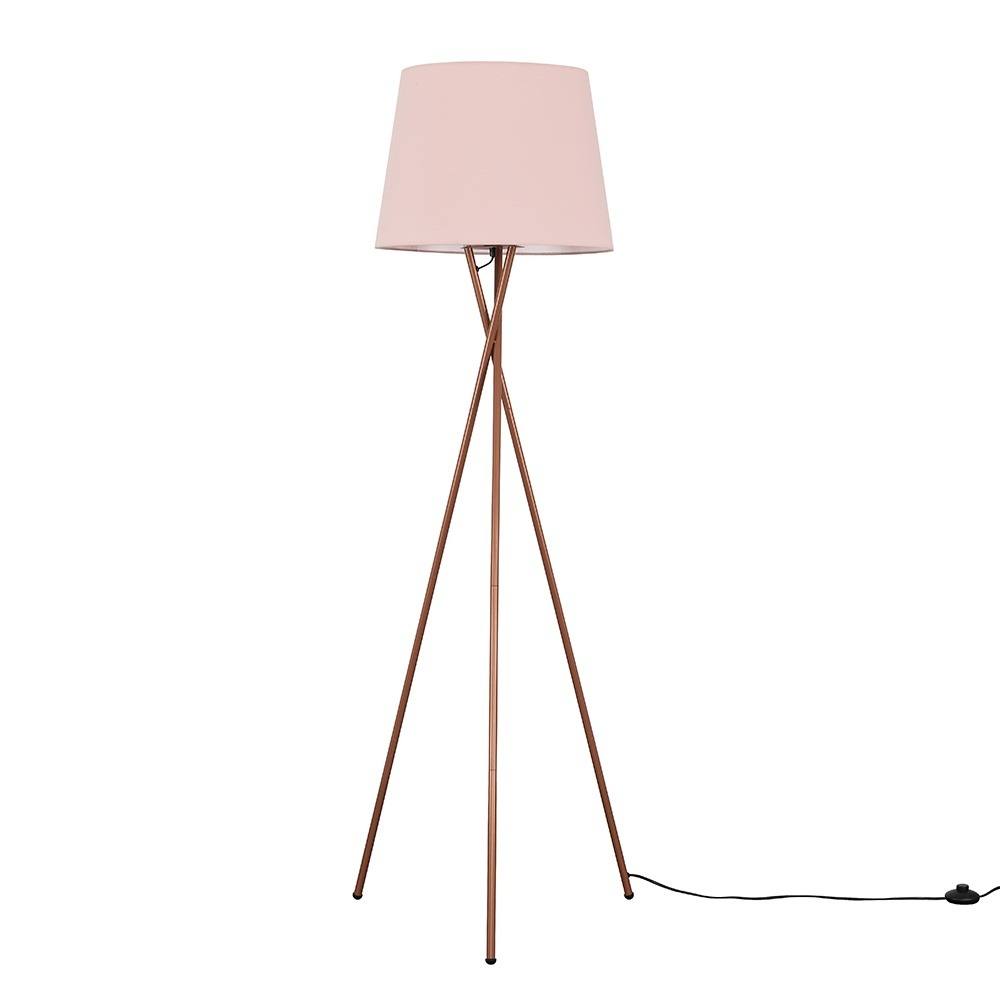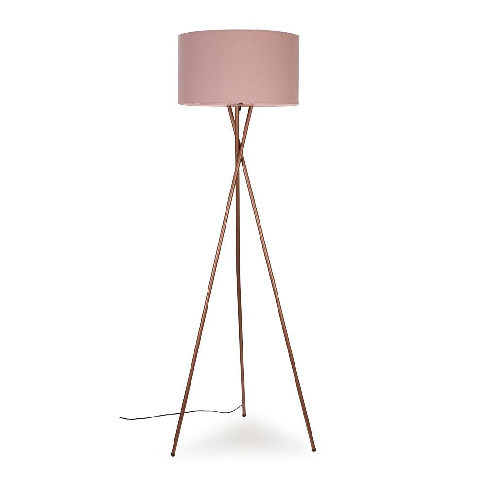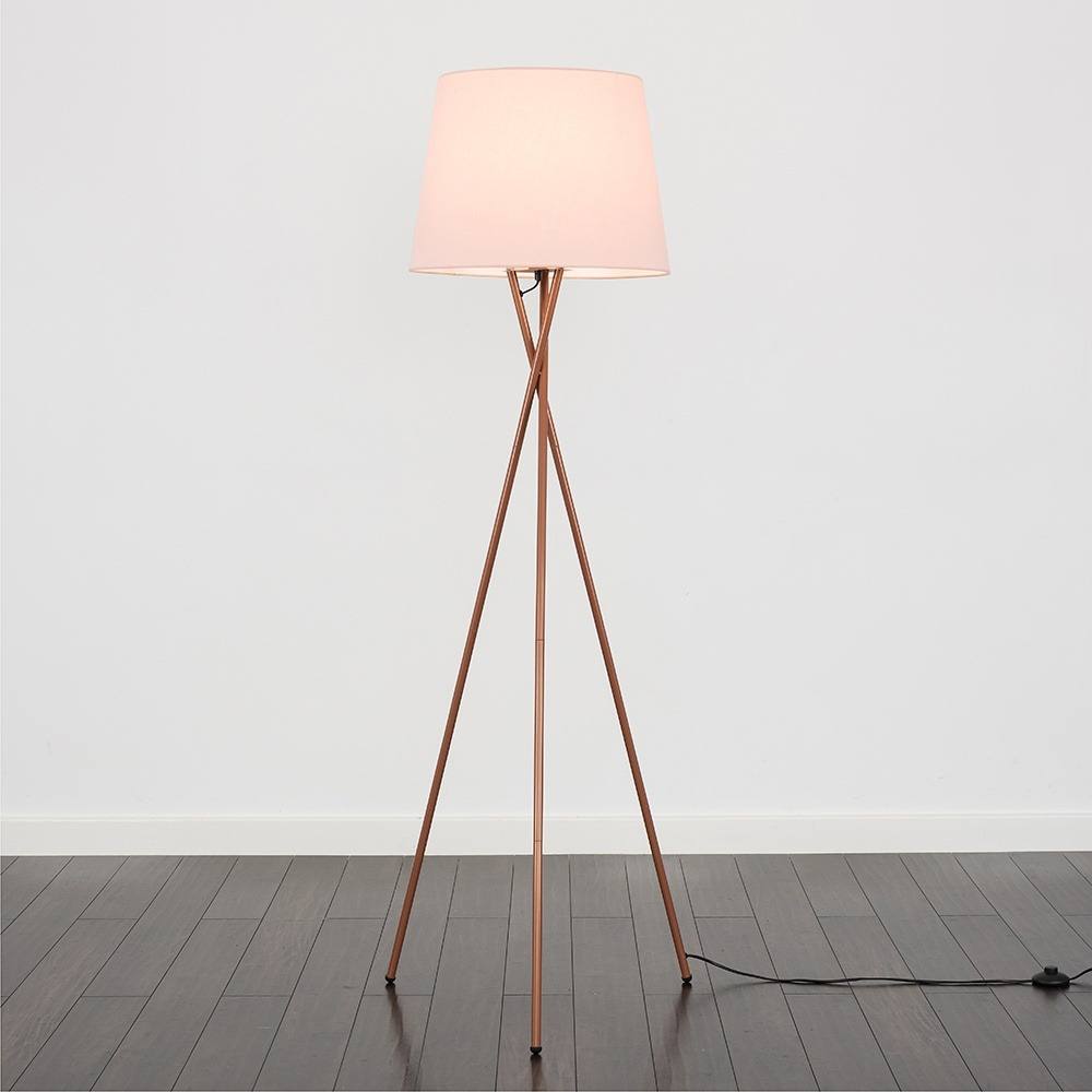 ValueLights Camden Copper Metal Tripod Floor Lamp with Pink Tapered Lamp Shade in Pale Pink