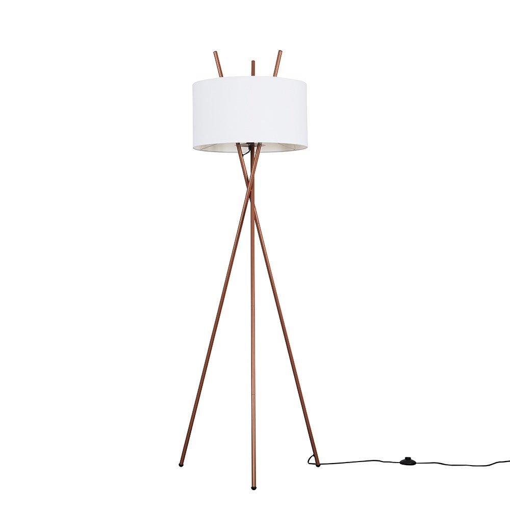 ValueLights Camden Copper Metal Tripod Floor Lamp with White Drum Lamp Shade