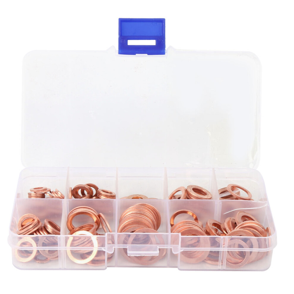 Homeponnew 150PCS M5-M22 Copper Crush Washer Gasket Set for Oil Pan, Flat for RING Seal Kit Compatible with Automotive, Marine, Machinery Engines