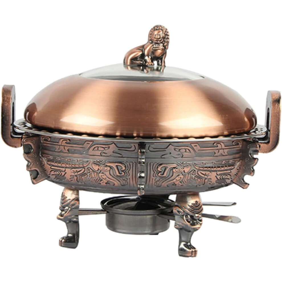 Round Chafing Dish Set 28cm Red Copper Stainless Steel Buffet Serving Tray with Food Pan, Frame, Lid, and Fuel Holder for Weddings and Parties