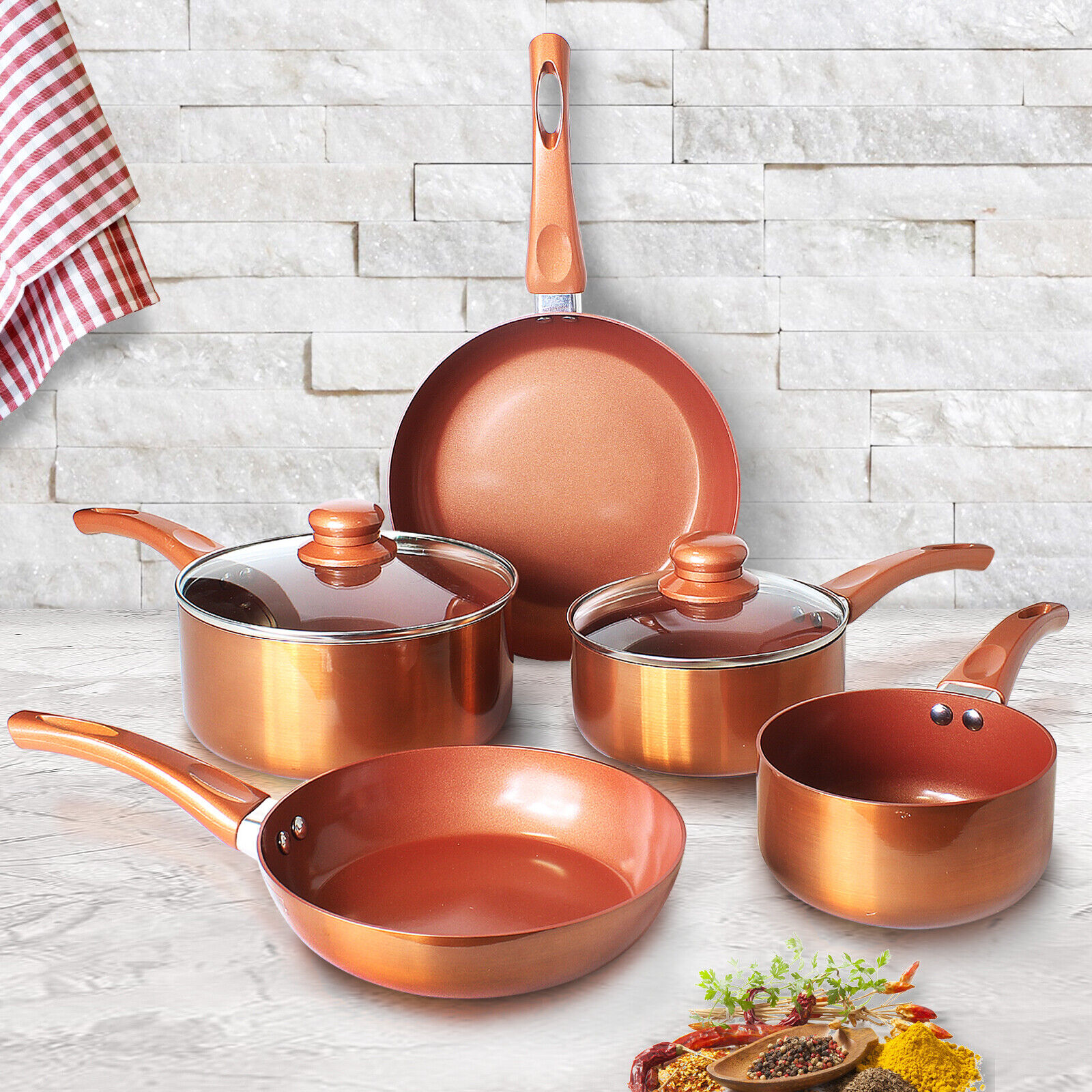 7 Piece Non Stick Copper Pan Set Stainless Steel Ceramic Aluminium Induction Hob