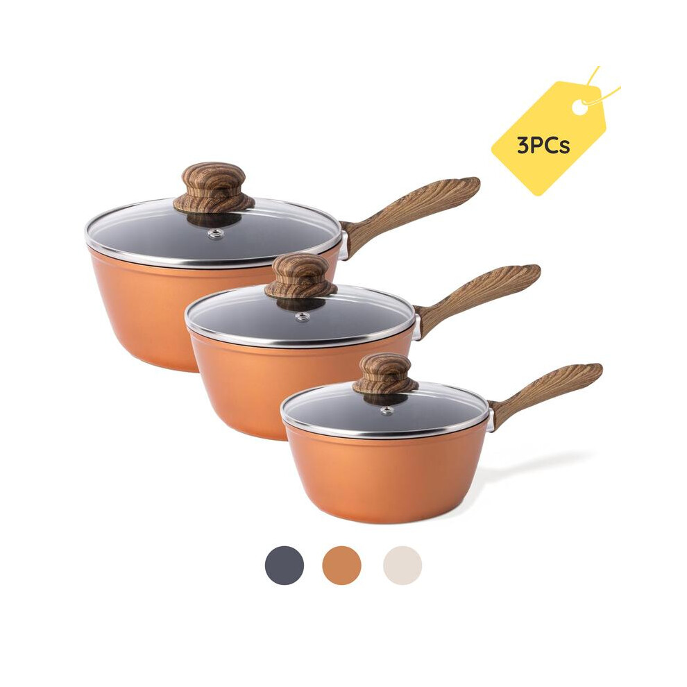 (Copper) Nuovva Non Stick Saucepan Set â Induction Saucepan with Lid â 3pcs Sauce Pan â Saucepot Set - by nuovva Cookware Glass Stylish Frying P