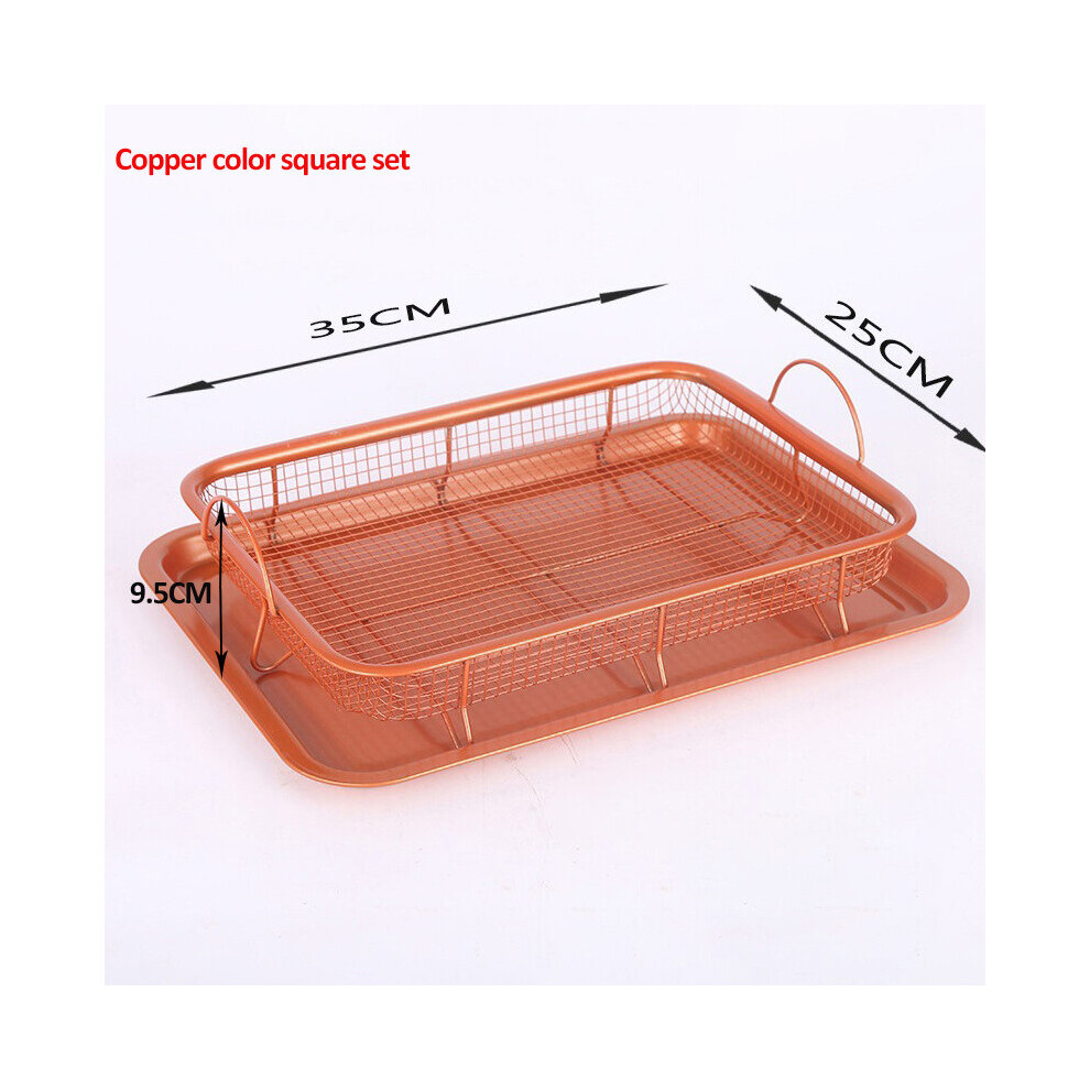 (Copper color set A) Copper Color Baking Tray Oil Frying Baking Pan Stainless Steel Non-stick Fried Chips Basket Baking Dish Grill Mesh Kitchen Tool