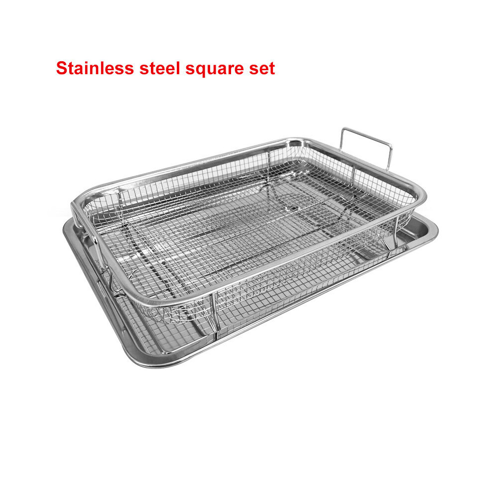 (Stainless Steel setA) Copper Color Baking Tray Oil Frying Baking Pan Stainless Steel Non-stick Fried Chips Basket Baking Dish Grill Mesh Kitchen Tool