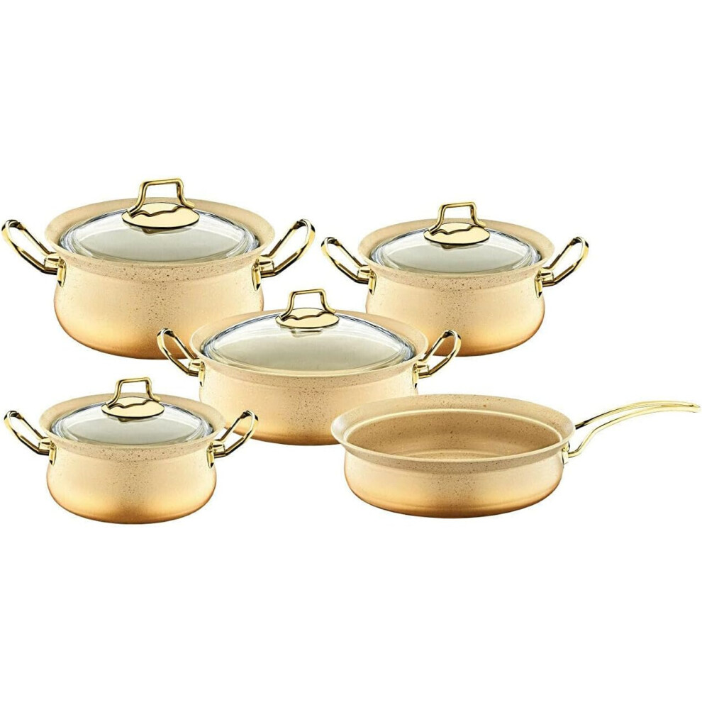 OMS Cookware Non Stick Granite Copper Set Ball Shape Set Cream Gold Glass Lids Casserole Pan Pot Frying Pan 9 Piece Cookware Set - Essential