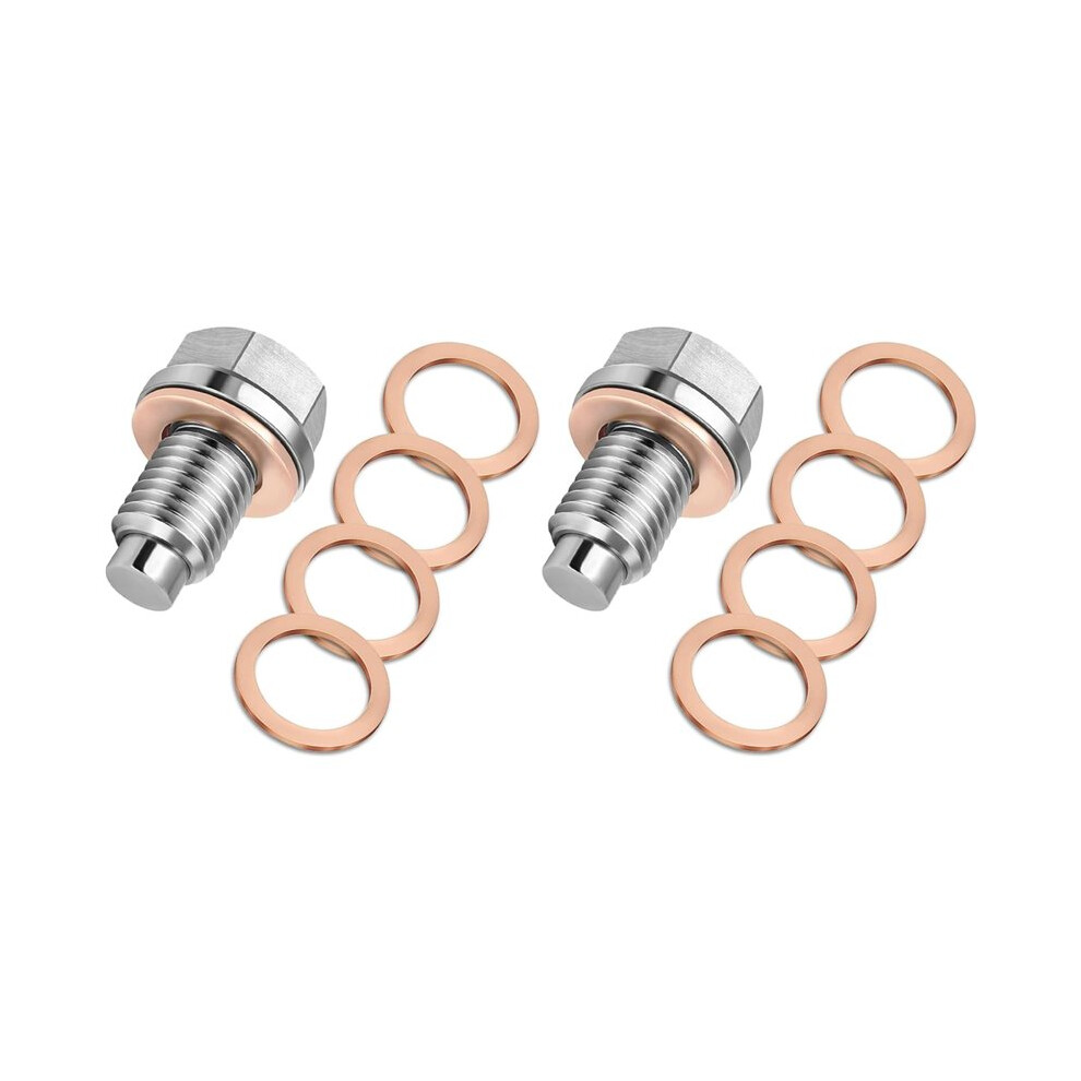 2 Set M14x1.5 Magnetic Stainless Steel Oil Pan Drain Nut Bolt with Copper Crush Washer Anti Leakage for Cars,Motorcycles