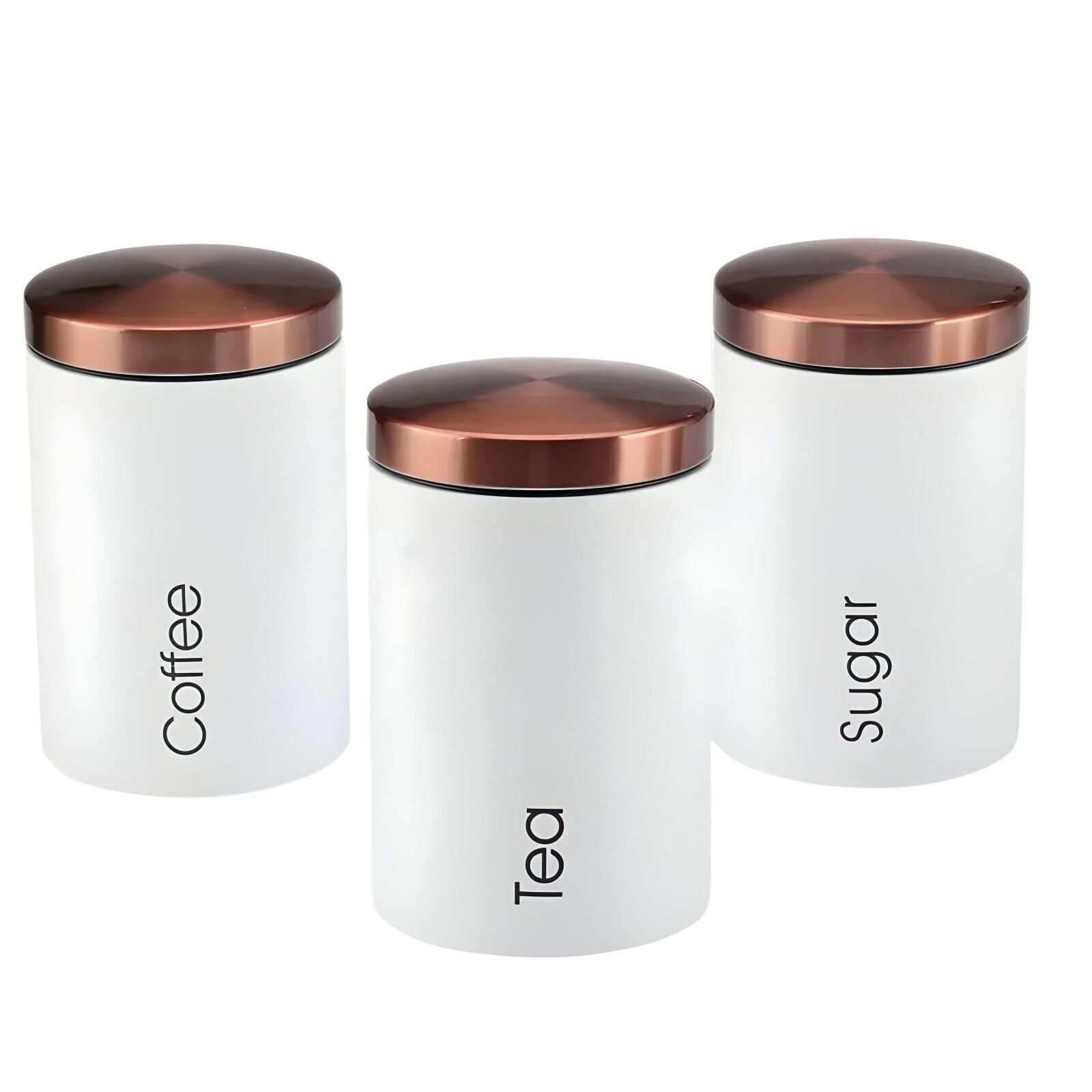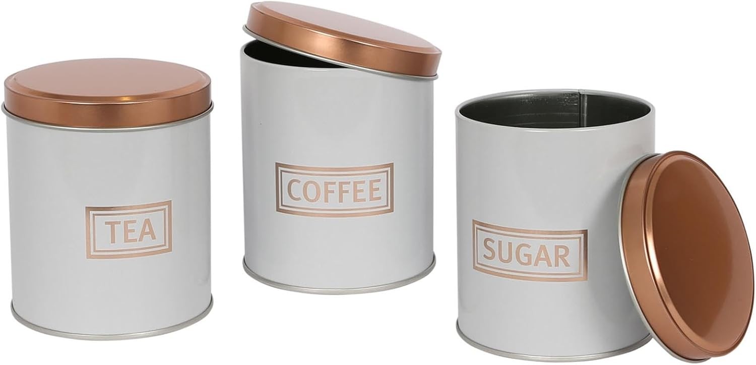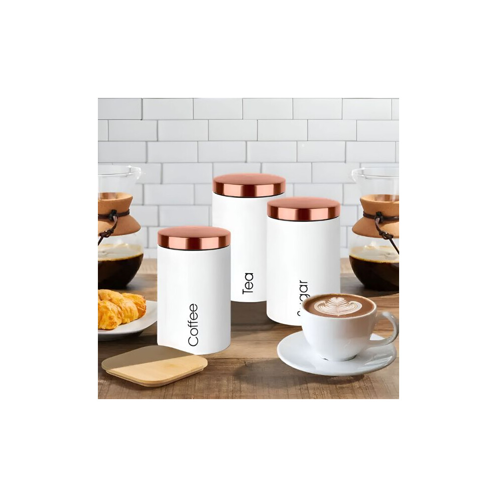 RLS White Set of 3 Tea, Coffee, Sugar canisters Storage Container Set copper
