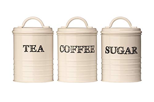 andrew james Tea Coffee Sugar Canisters Set for Home or Office, Vintage Style Kitchen Storage Set, Rust Resistant Powder Coated Tea Caddies, Store Coffee Granules Teabags Sugar