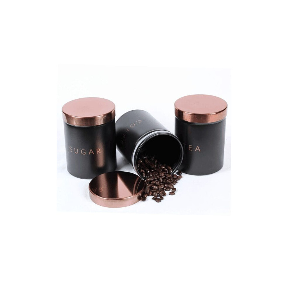 RLS Black Set of 3 Tea, Coffee, Sugar canisters Storage Container Set copper