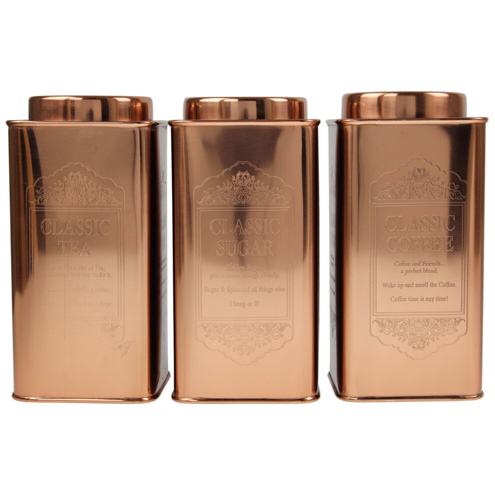 Set Of 3 Large Tea Coffee Sugar Canisters Kitchen Storage Tin Jars Pots Copper