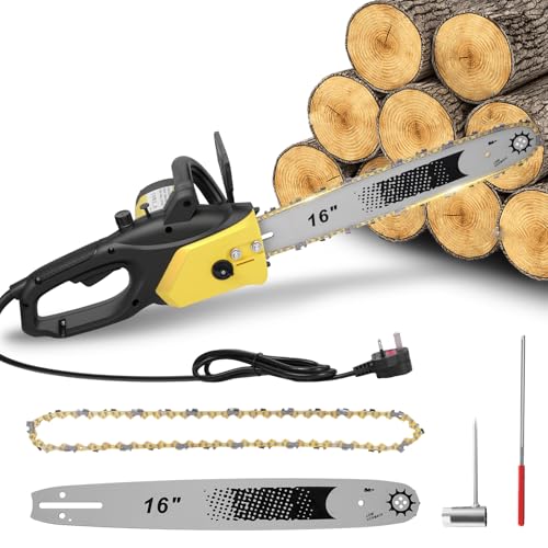 DURHAND 2000W Powerful Electric Chainsaw, 16" Aluminium Blade Portable Corded Chain Saw, 7250rpm Chain Saw for Garden Tree Pruning, 13m/s Chain Speed Auto Chain Lubrication to Cut Wood, Yellow