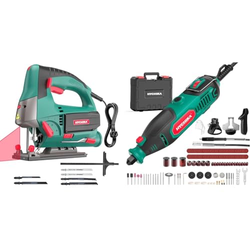 Bundle of HYCHIKA Jig Saws, 800W Max Cutting Depth 110mm for Metal+ HYCHIKA Rotary Tool Kit with Chainsaw Sharpener - 150W Corded Power Rotary Tool