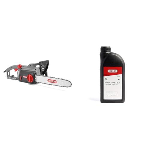 Oregon CS1200 1800W Electric Chainsaw, Corded Electric Saw with 35cm (14-Inch) & Biodegradable Chainsaw Chain & Guide Bar Oil, Chainsaw Oil for Chains, Premium Lubricant