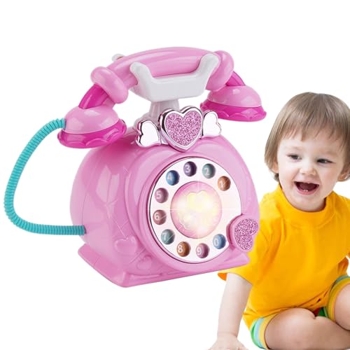 TOYANDONA Kids Educational Toy Phone Simulated Dial Corded Toy Telephone for Toddler Role Play and Communication Development Small Child Landline Extension 6 Inch