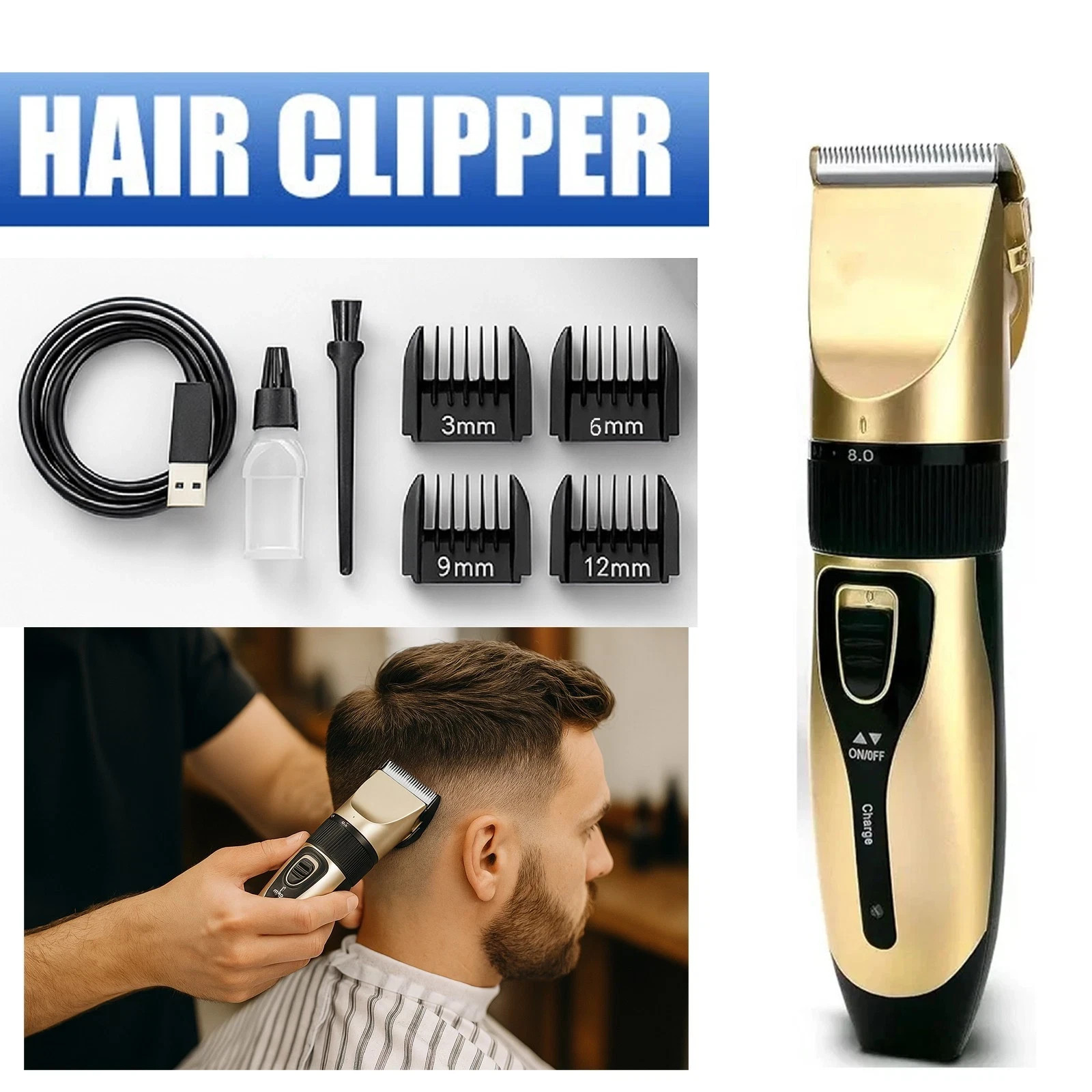 Professional Cordless Hair Clippers & Beard Trimmer Kit with Ceramic Titanium Blades, 3-12mm Adjustable, Low Noise, USB Chargeable