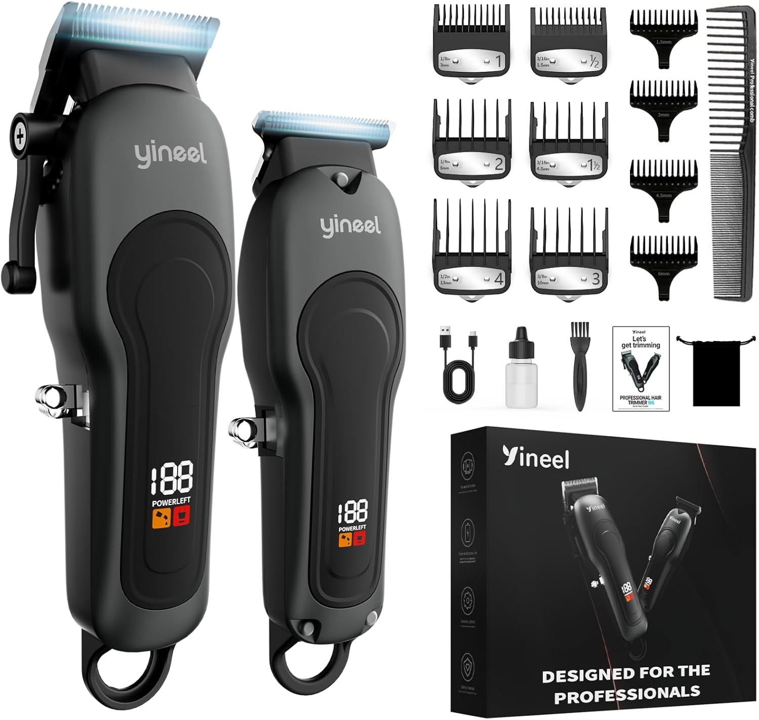 Yineel Professional Cordless Hair Clippers & Beard Trimmer Set with LED Display,