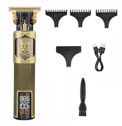 Hair Clipper for Men, Hair Trimmer Shaver with LCD Display, Professional Beard Trimmer Barber Clippers Cordless Detailer Trimmer, Long-Lasting Battery Clippers for Haircuts (Gold Upgrad)
