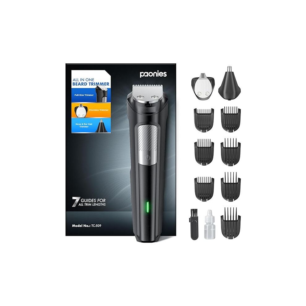 Beard Trimmer Hair Clippers for Men - All-in-One Cordless Nose & Ear Hair Trimmer Grooming Kits with Zero Gapped T-Blade Electric Razor Shaver, 9 Guide Combs, Ideal Gifts for Men
