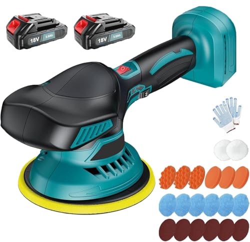 Cordless Car Buffer Polisher, Compatible with Makita 18V Battery, 6 Variable Speed 1800-5800RPM, Extra 24PCS Attachments, 145mm Base, with 2 x3.0 Ah Batteries, for Auto Sanding Polishing