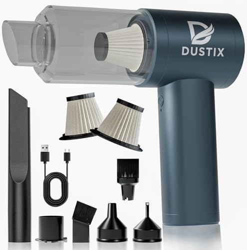 DUSTIX Handheld Vacuum Cleaner Cordless, Powerful 12000PA Dual Gear Suction, Portable, Lightweight & Mini Vacuum, Car Hoover, for Car, Office, Home & Kitchen - Essentials for Cleaning & Blowing