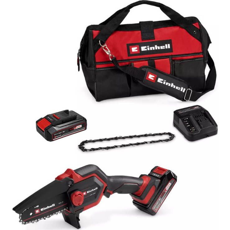 Einhell GE-PS 18/15 Li BL 18v Cordless Mini Pruning Chainsaw 130mm 1 x 2.5ah Li-ion Battery Charger