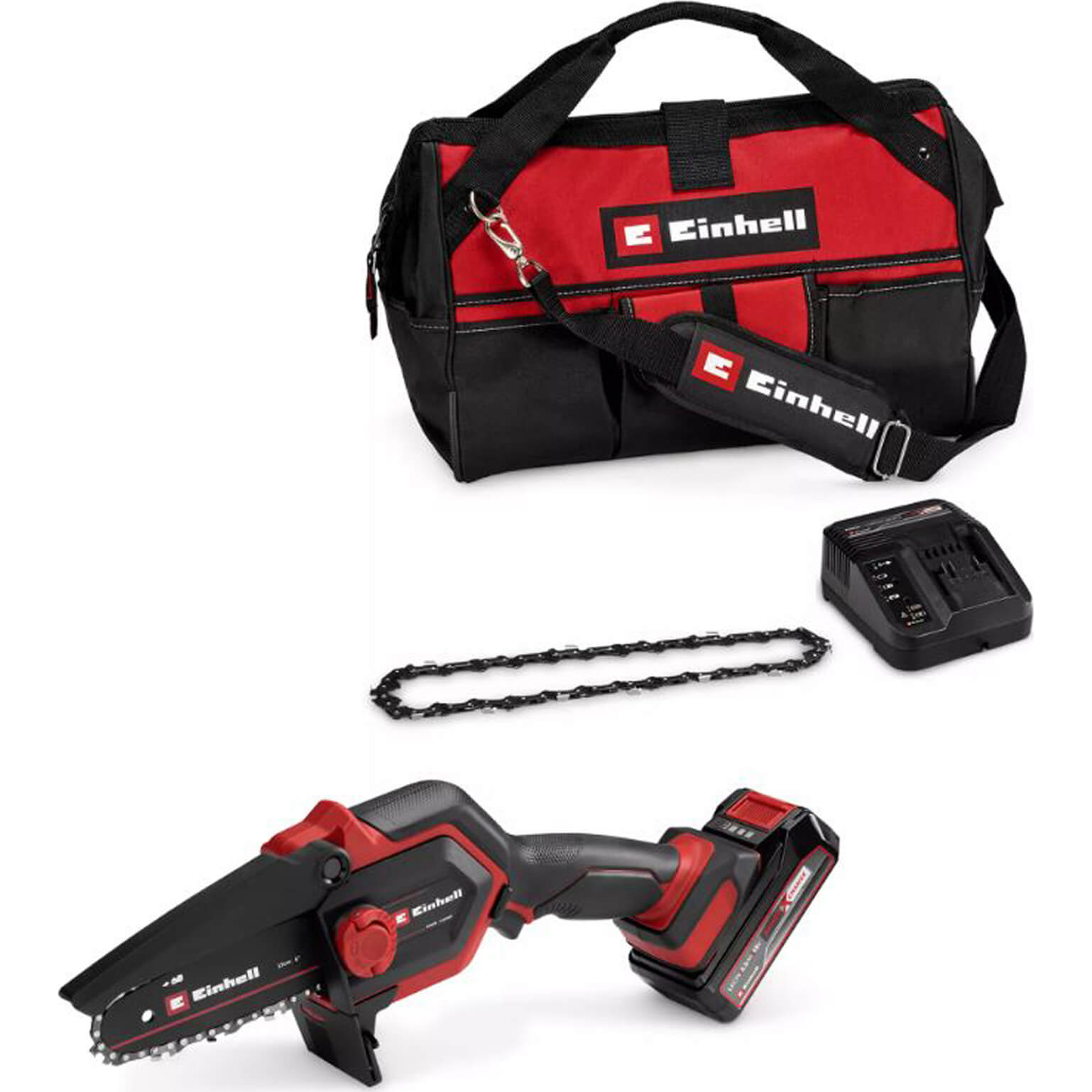 Einhell GE-PS 18/15 Li BL 18v Cordless Mini Pruning Chainsaw 130mm 2 x 2.5ah Li-ion Battery Charger