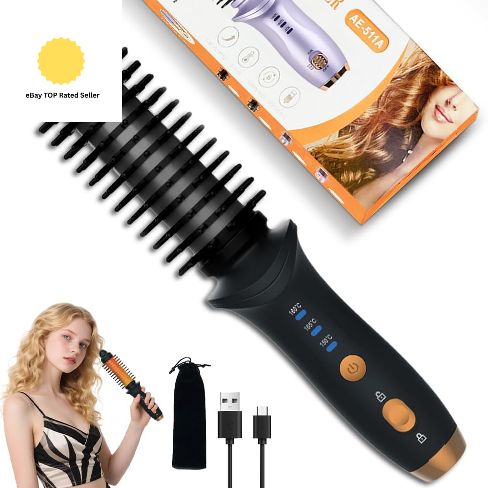 DonGoGo New Cordless Hair Curler, 3-in-1 Heated Curling Brush, Portable USB Rec