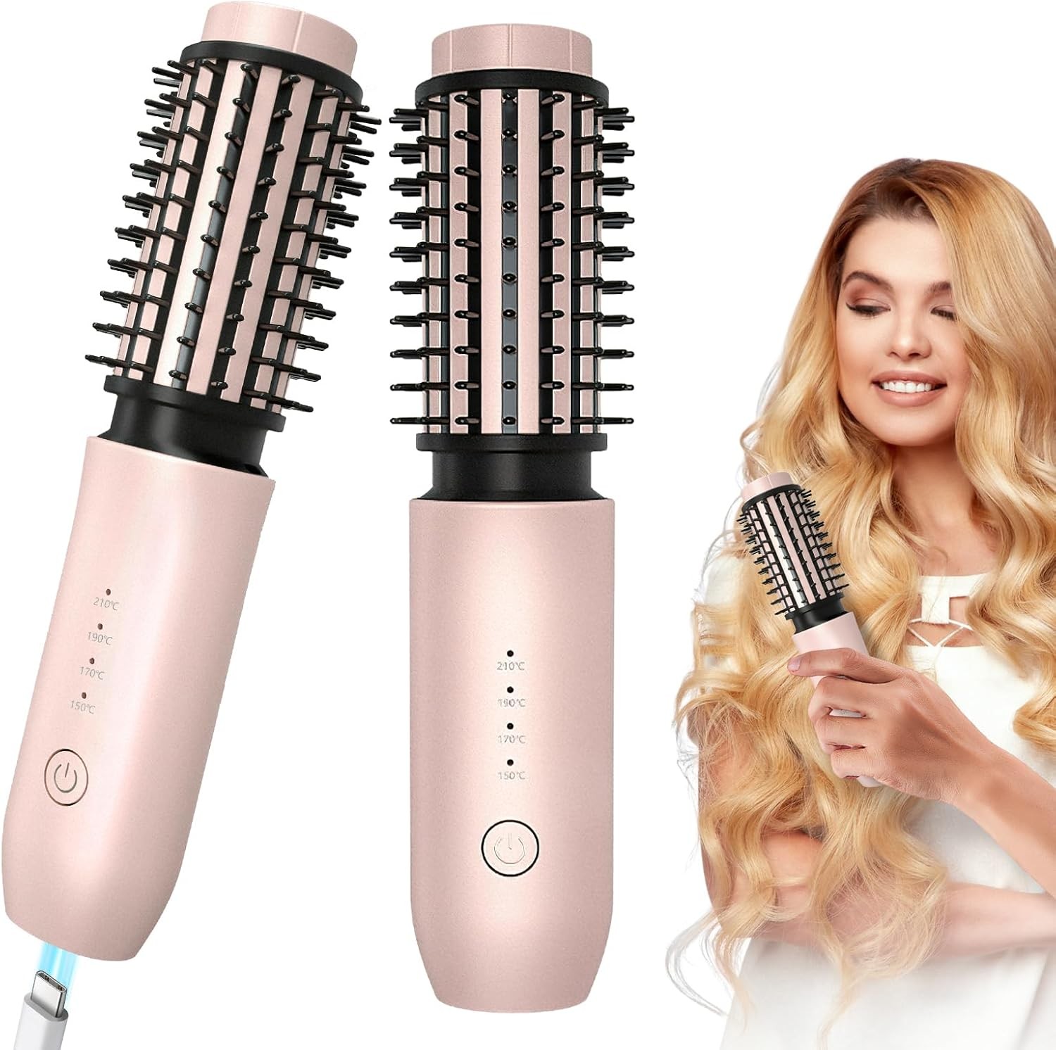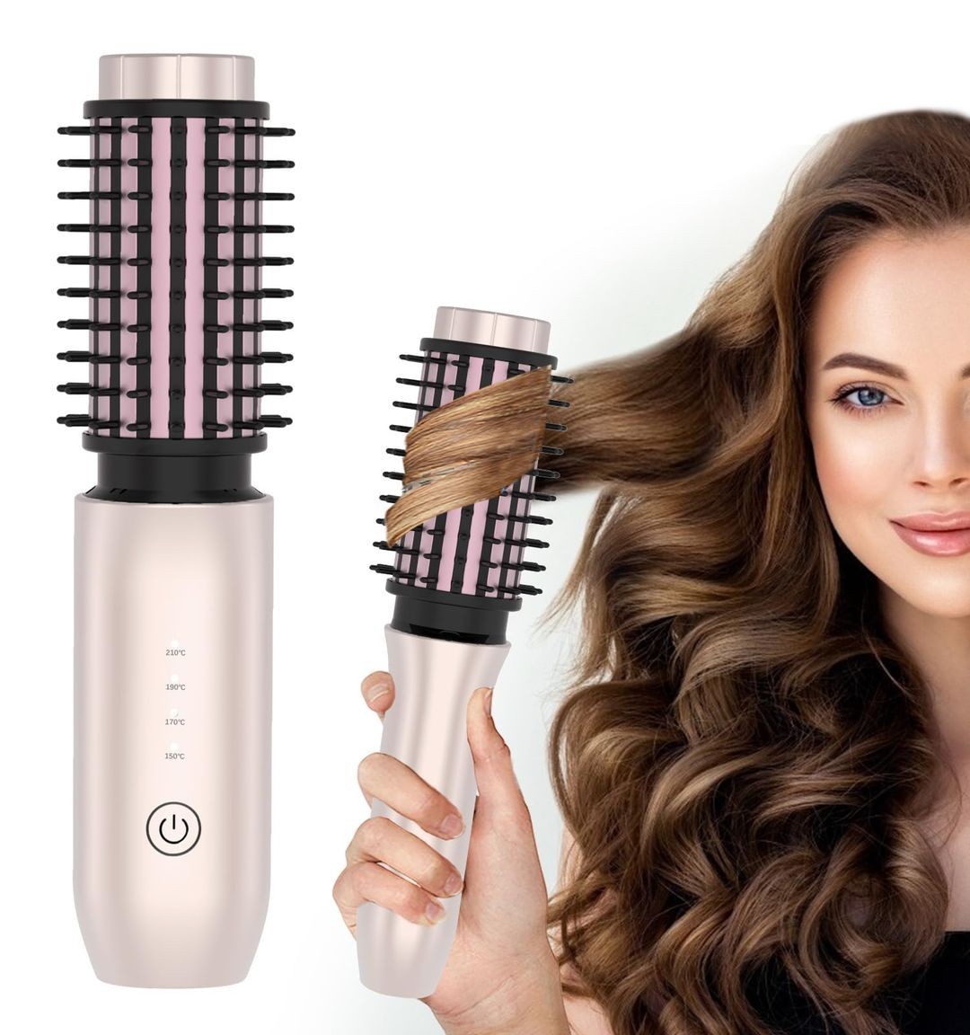Cordless Curler Brush 3-in-1 Portable Heated Curling 4 Heat Settings Rose Gold